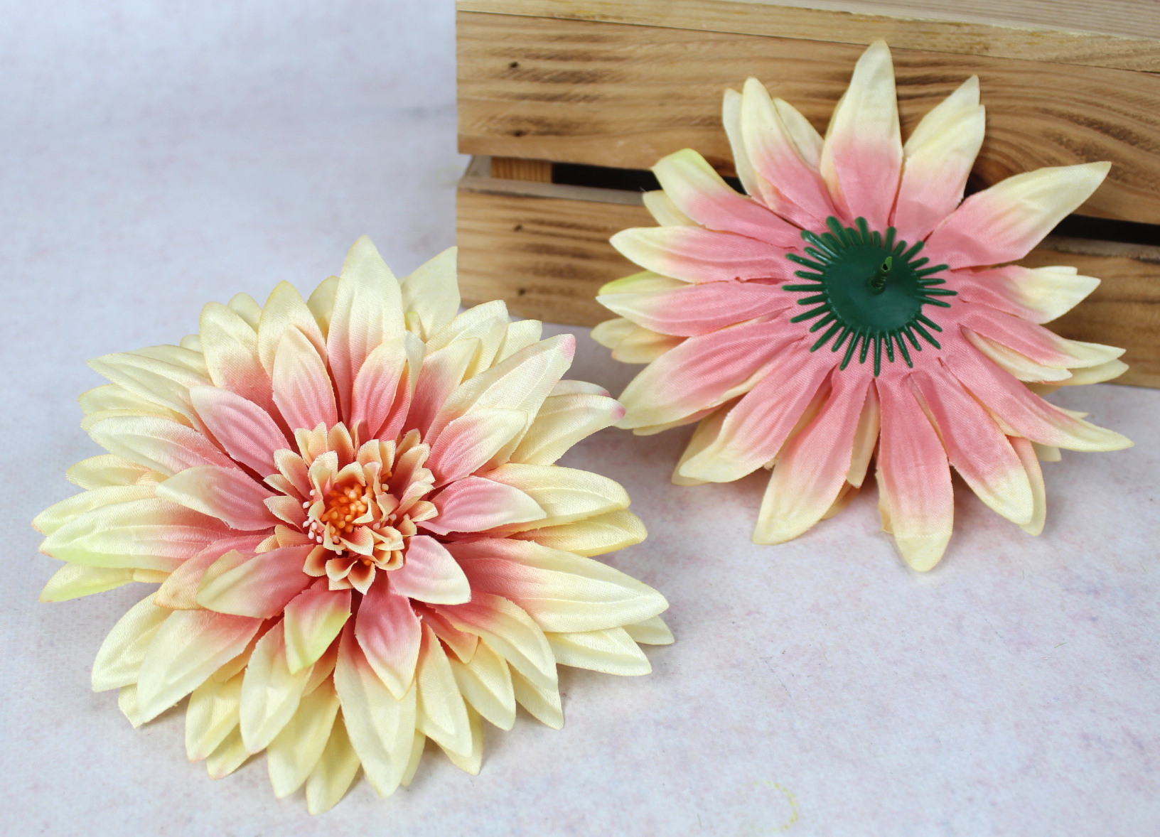 Główka kwiatowa DALIA 17 cm jasno ŻÓŁTA z różowym cieniowaniem