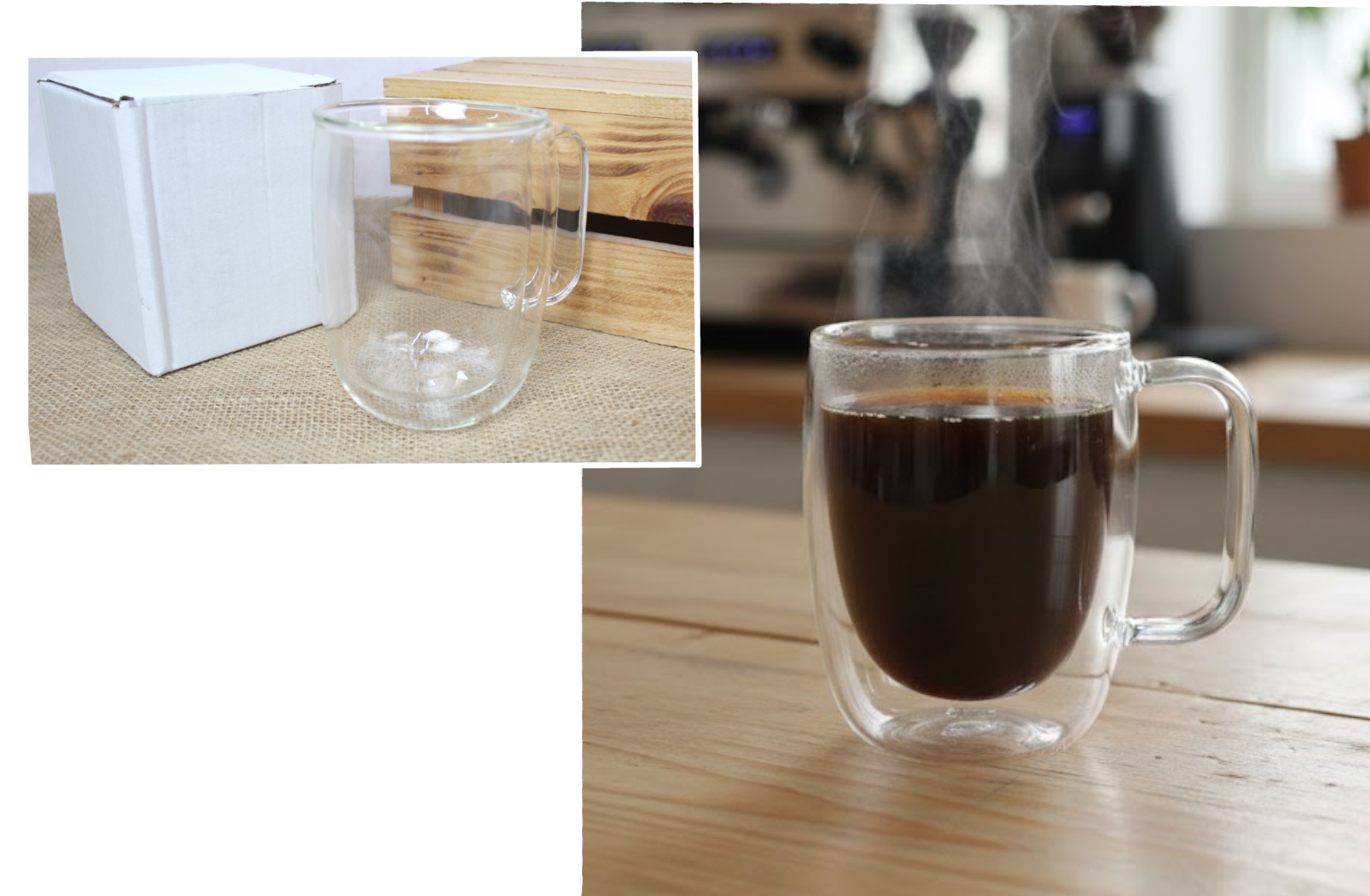 Kubek szklanka z uchem 310 ml PODWÓJNA ŚCIANKA 11x9 cm