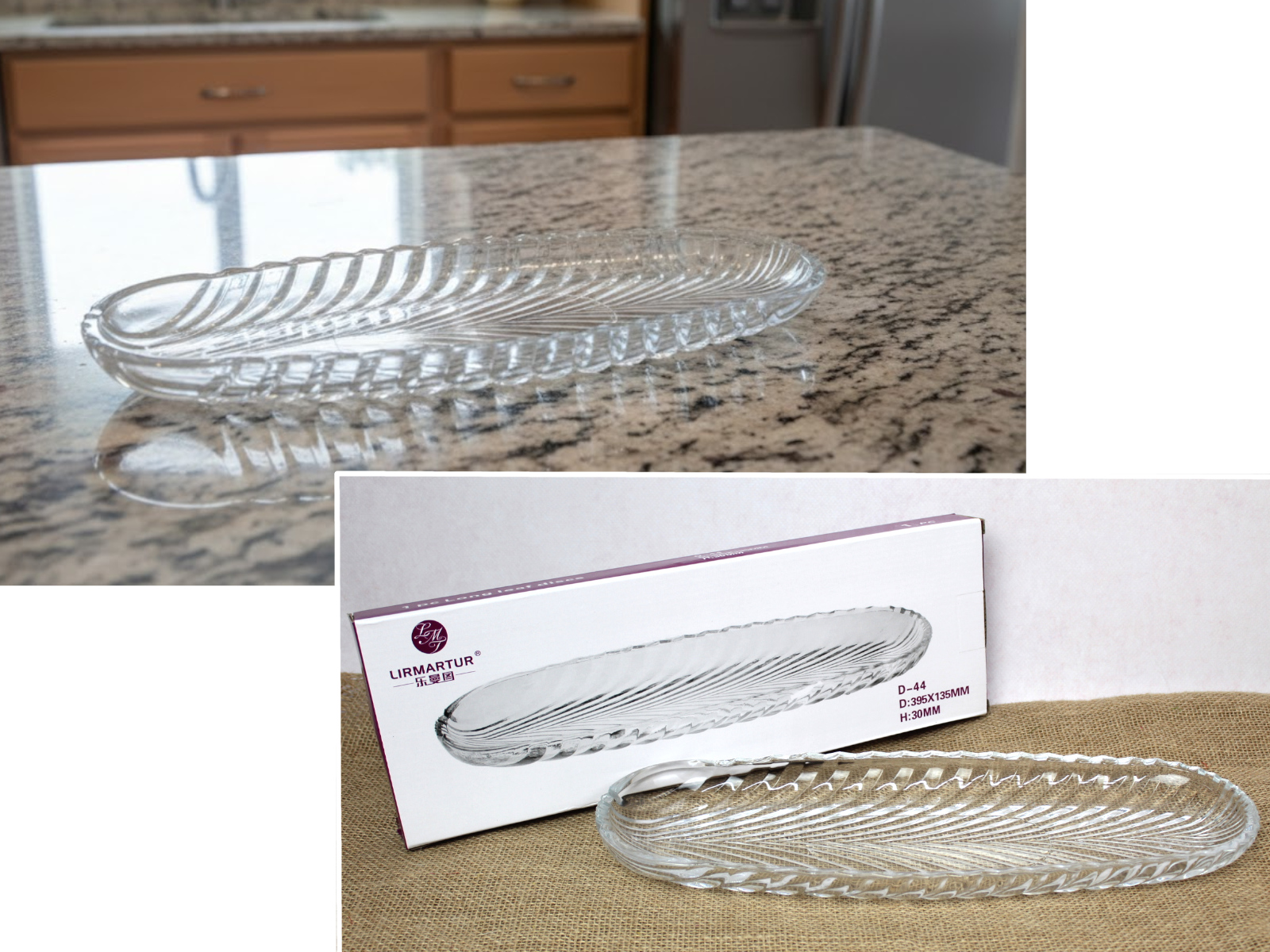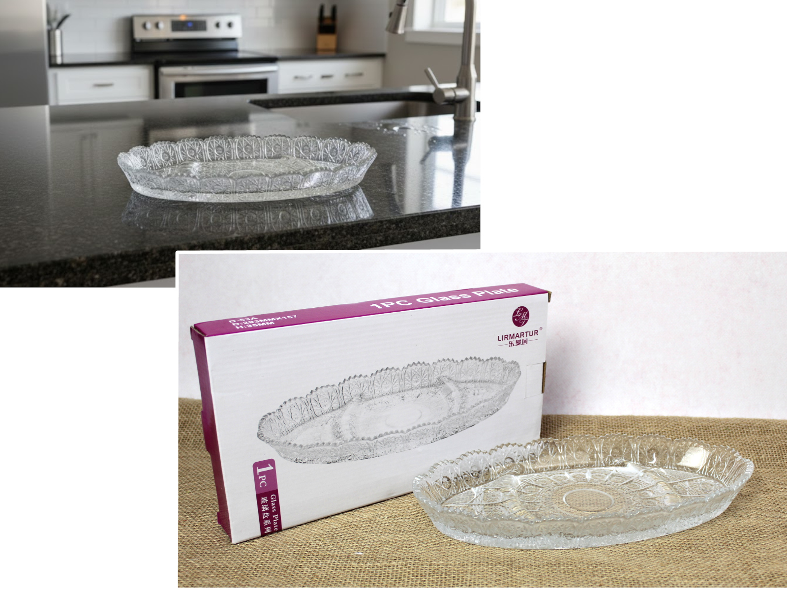 Półmisek szklany OWALNY z tłoczonym wzorem 39x13,5 cm