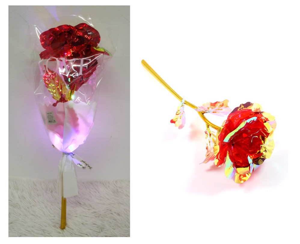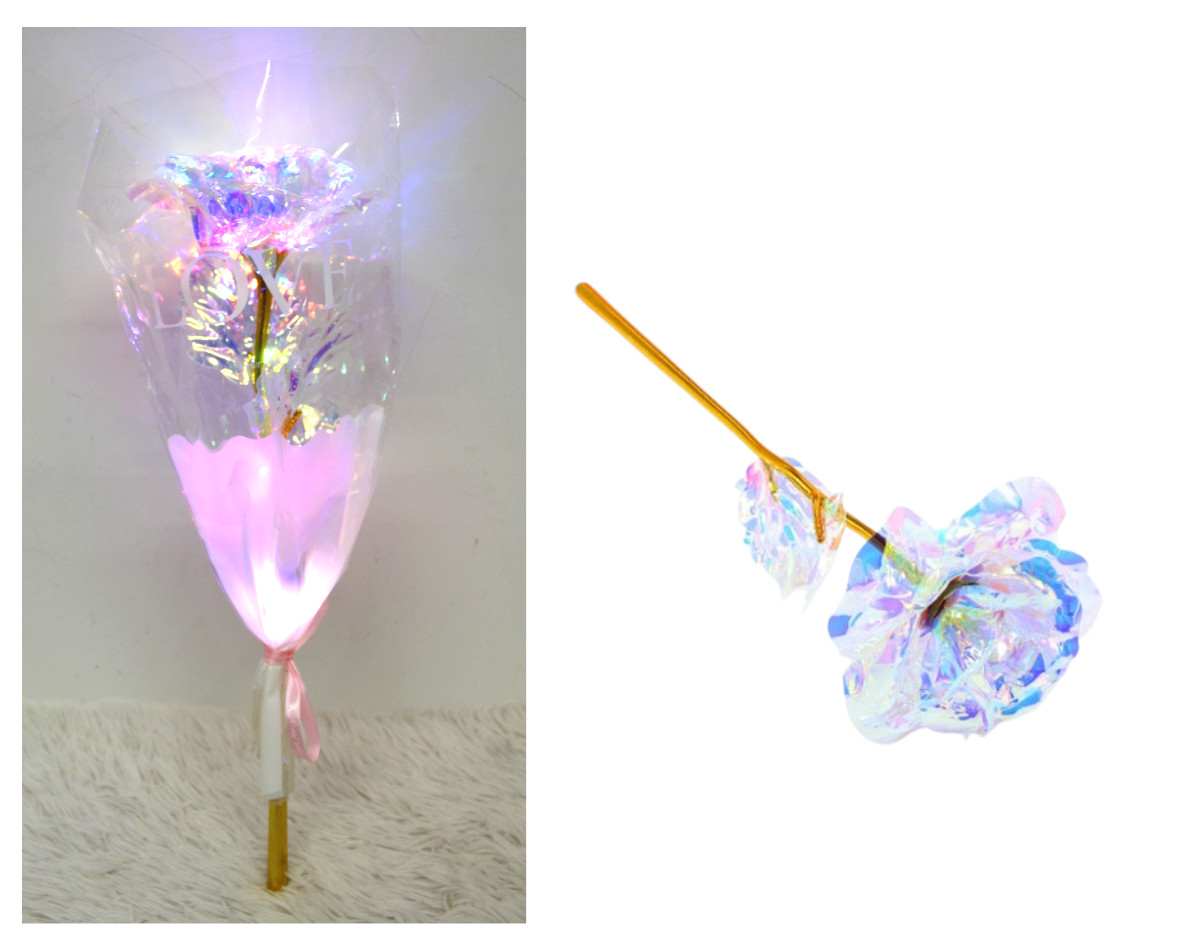 WIECZNA RÓŻA plastikowa świecąca w folii 48x15 cm HOLOGRAFICZNA