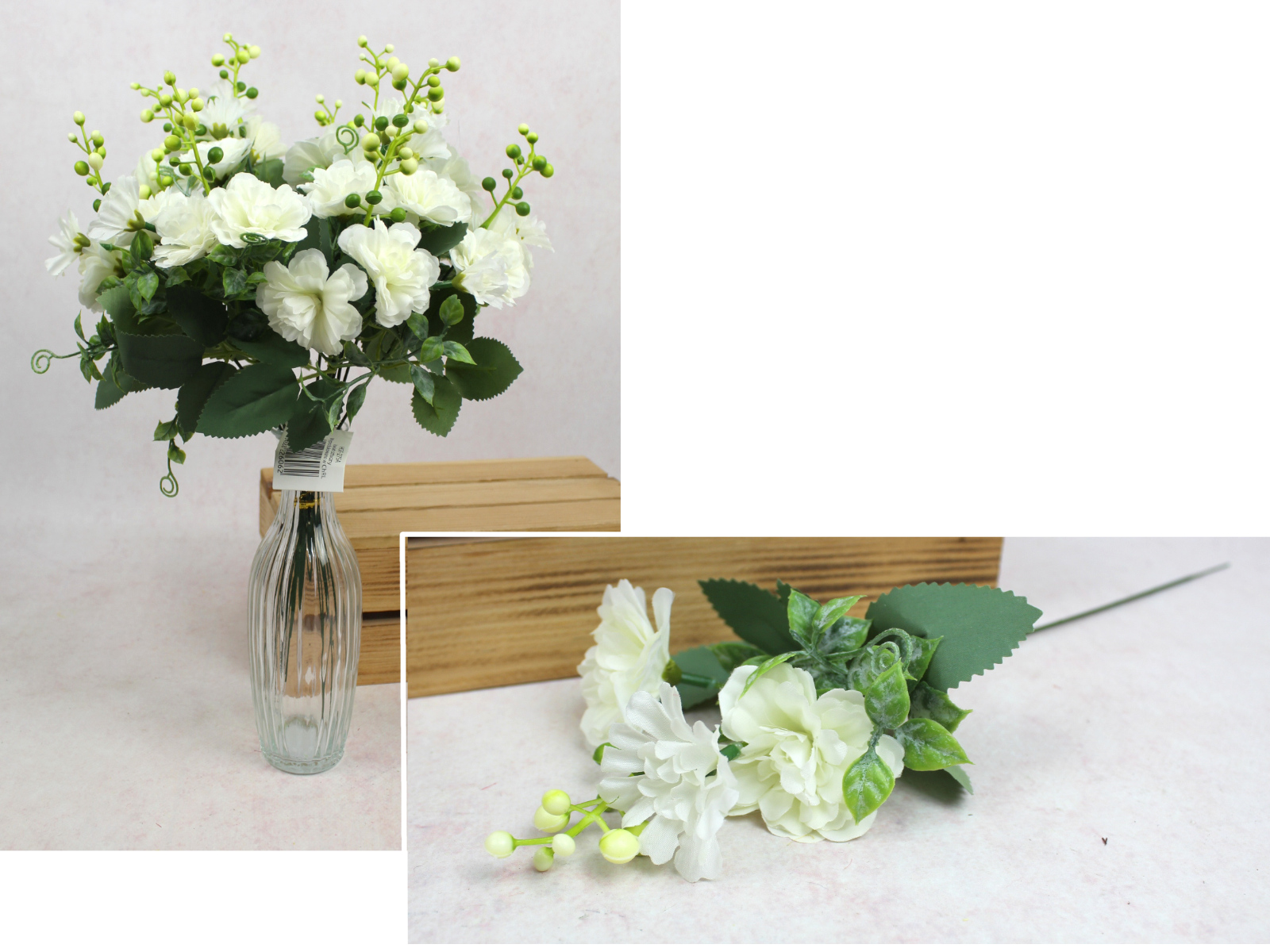Kwiat GOŹDZIK wys. 30 cm na piku (3 kwiaty 6-5 cm) BIAŁY - 1 szt