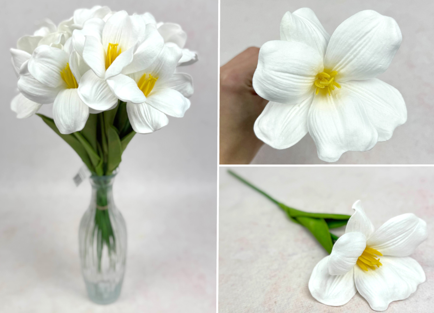 Bukiet TULIPAN wys. 42 cm, 7 łodyg (7 kwiatów 6x3,5 cm) BIAŁY