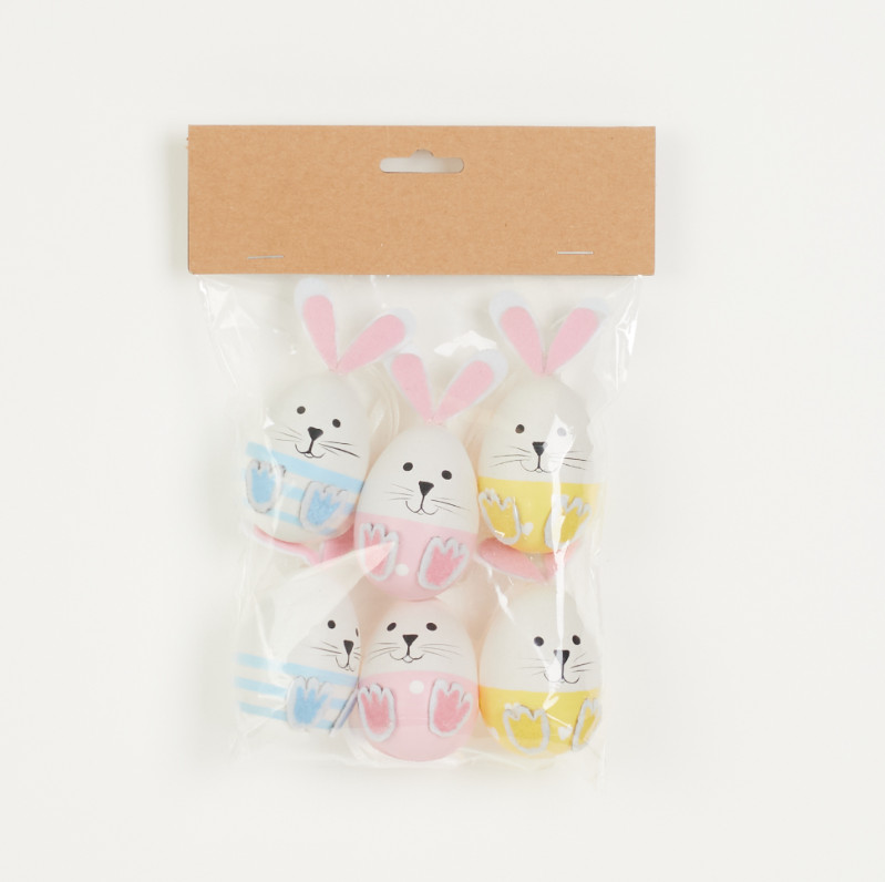 Jajko plastikowe z zawieszką 6 cm zajączek - kpl 6 szt TJ238-01