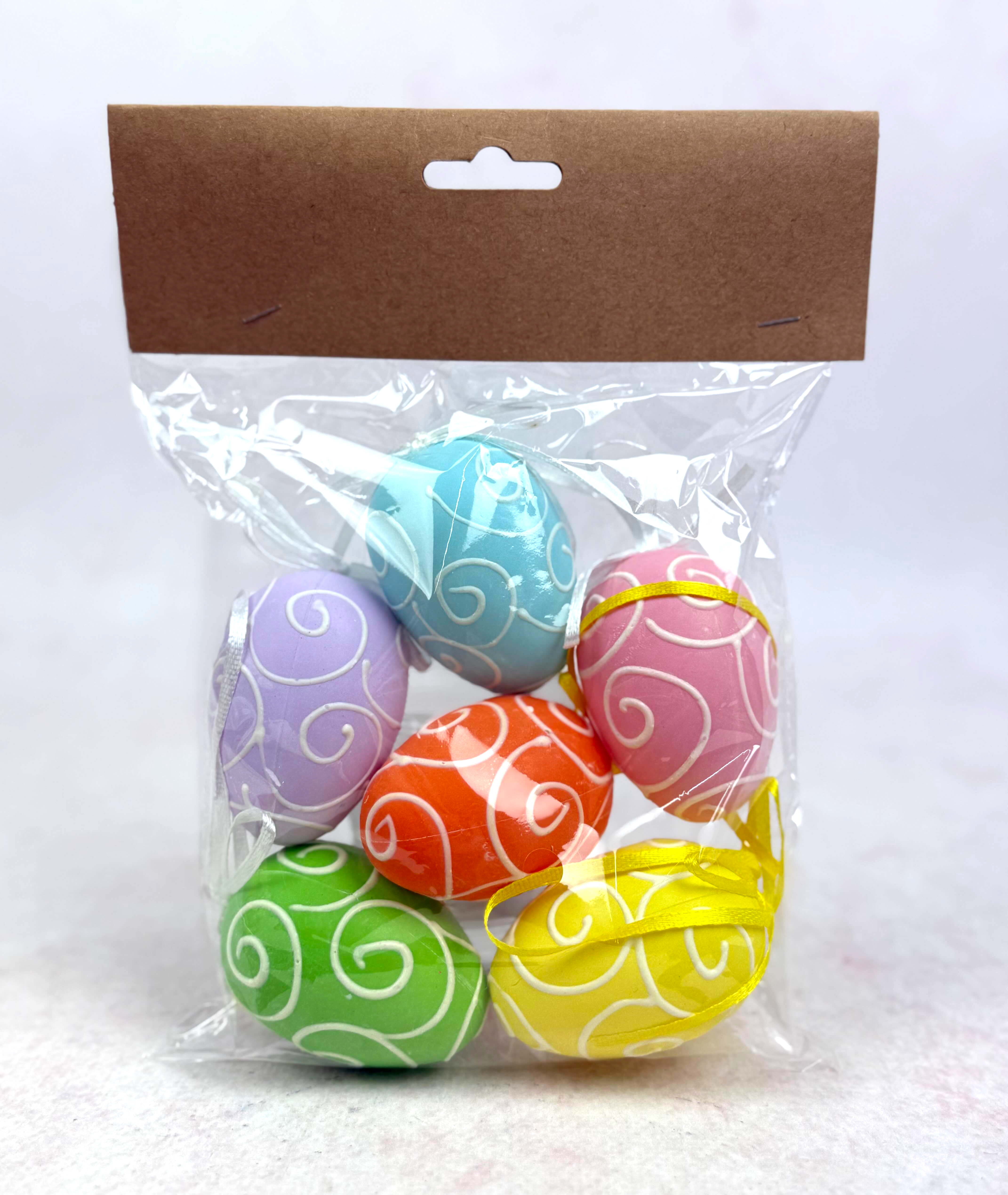 Jajko plastikowe z zawieszką 6 cm zawijasy kolor - kpl 6 szt TJ235-01