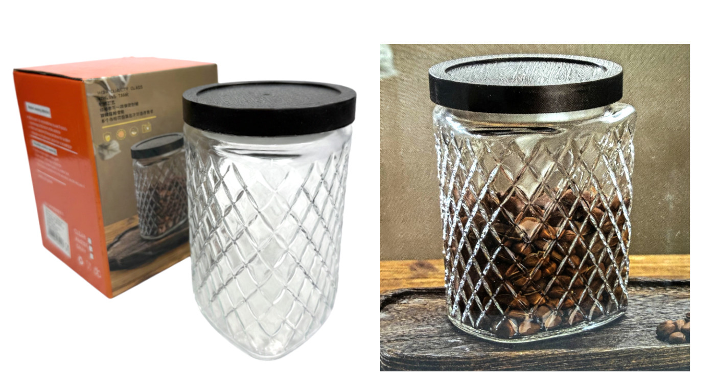 Pojemnik szklany TRÓJKĄTNY z plastikową pokrywką imitującą drewno 13,5x10 cm ROMBY