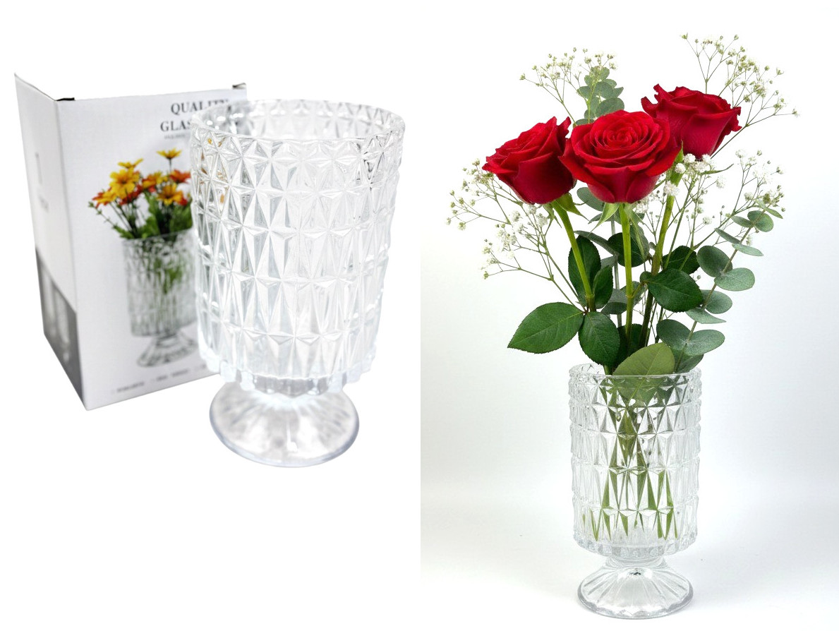 Wazon szklany na nóżce 19x12 cm ROMBY