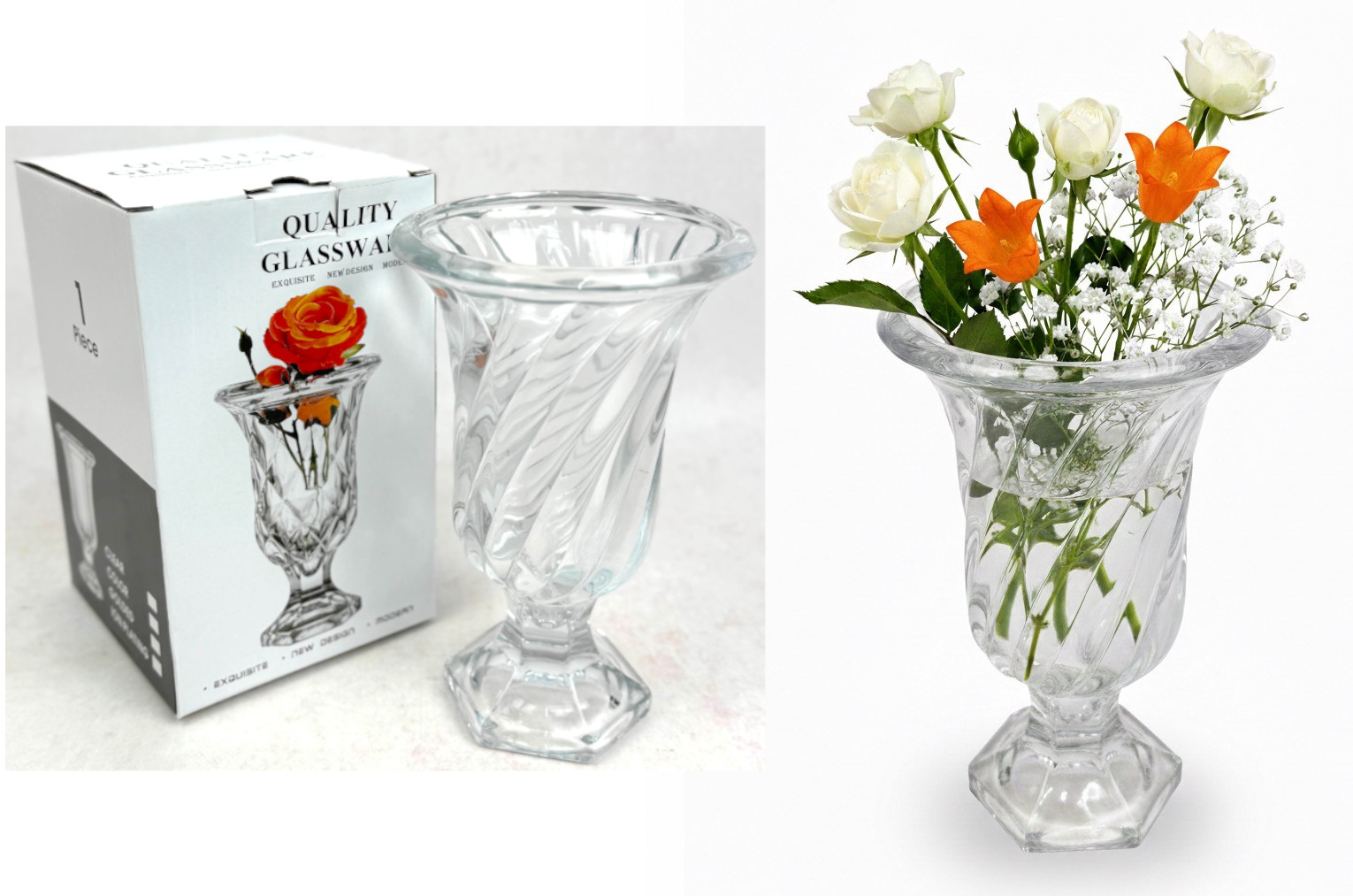 Wazon szklany na nóżce 24x15 cm ZAWIJANY