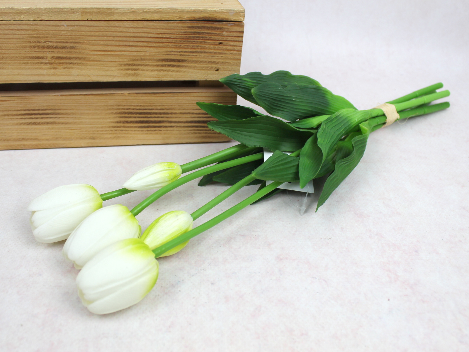Bukiet, pęczek TULIPAN gumowy wys. 46 cm, 5 łodyg (3 kwiaty 5x4 cm + pąki) BIAŁY