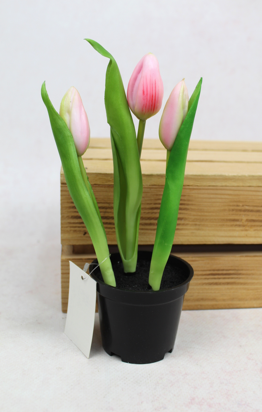 Kwiat TULIPAN gumowy w doniczce 24 cm (3 kwiaty) RÓŻOWY