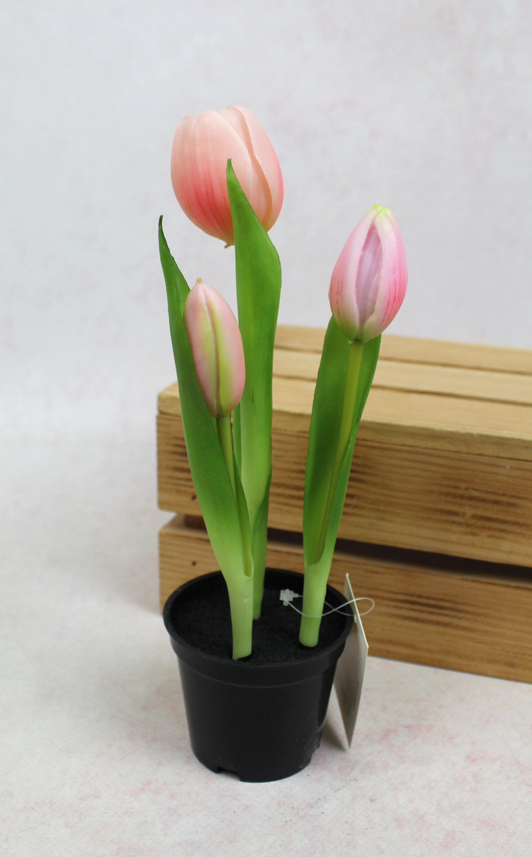 Kwiat TULIPAN gumowy w doniczce 23 cm, 3 kwiaty RÓŻOWY