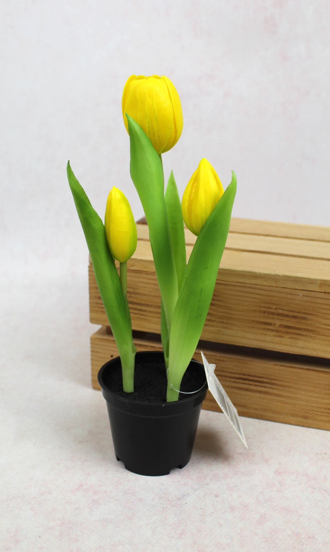 Kwiat TULIPAN gumowy w doniczce 24 cm (3 kwiaty) ŻÓŁTY
