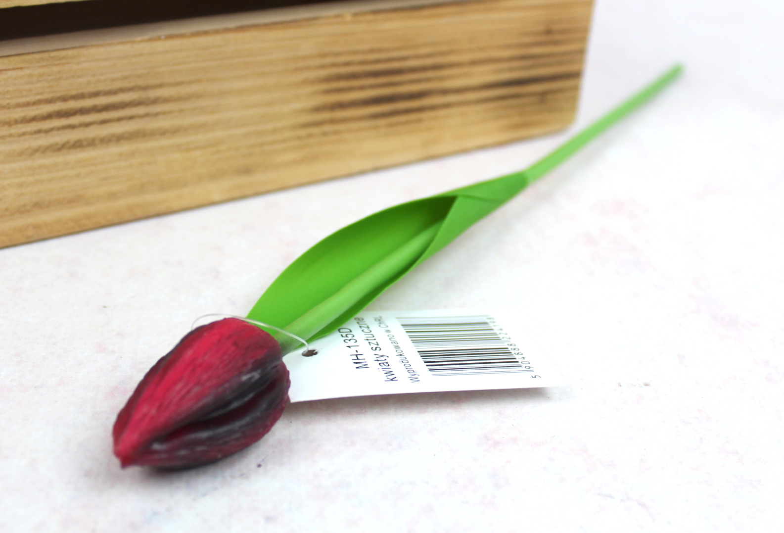 Kwiat TULIPAN gumowy wys. 31 cm (kwiat 4,5x2 cm) BORDOWY cieniowany