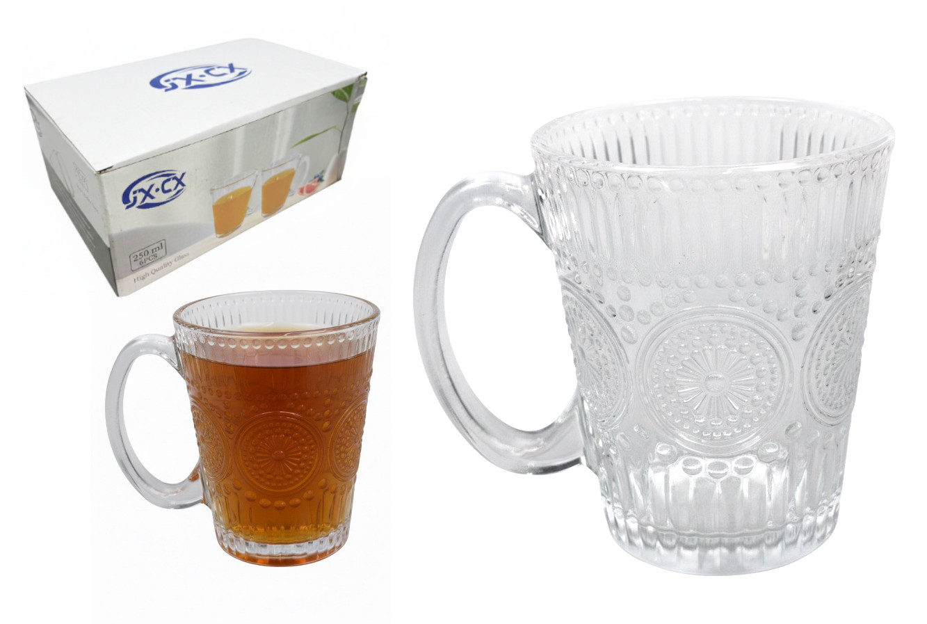 Kubek szklanka z uchem młotkowana 10x8 cm 250 ml kpl. 6 szt