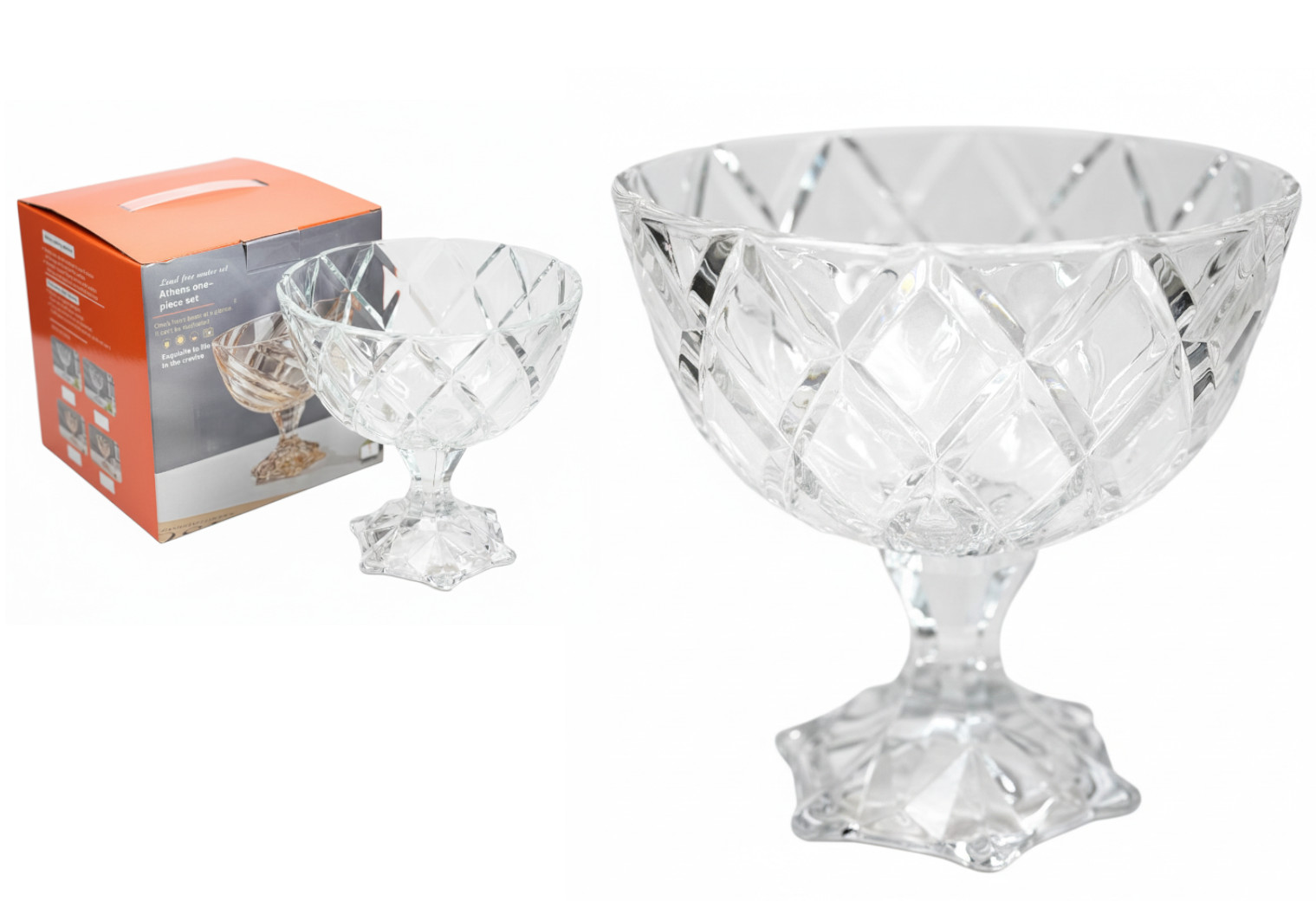 Miska szklana na nóżce tłoczony wzór romby 20x20x14 cm