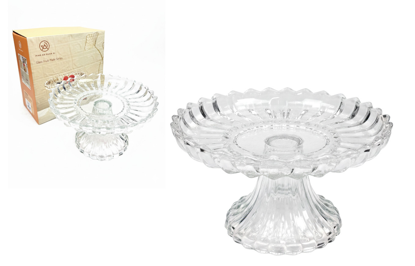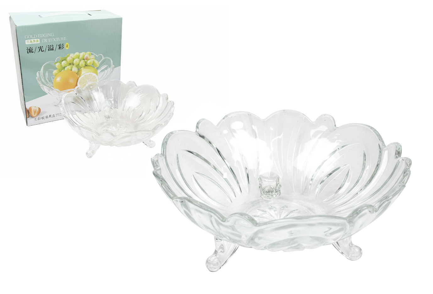 Miska szklana na nóżce tłoczony wzór paski 20x20x14 cm