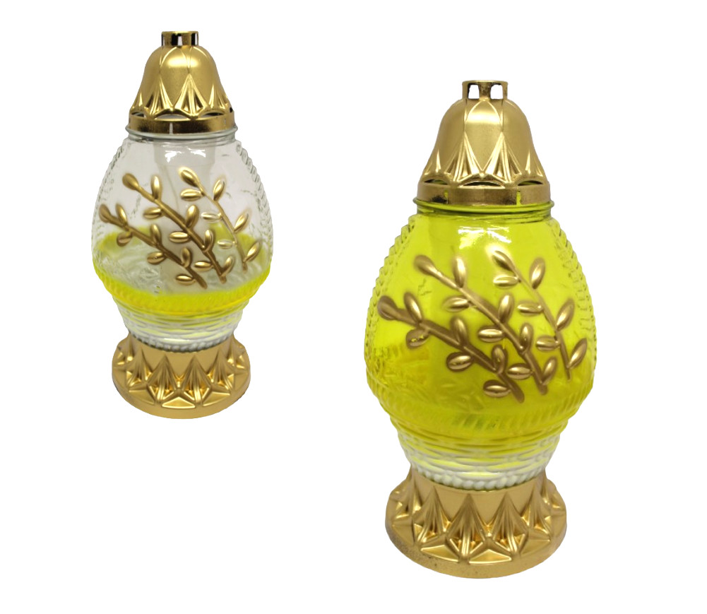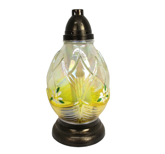 Znicz szklany ZPJ-9 Jajko ŻÓŁTE wytłaczane kwiaty 32 cm - 1 szt