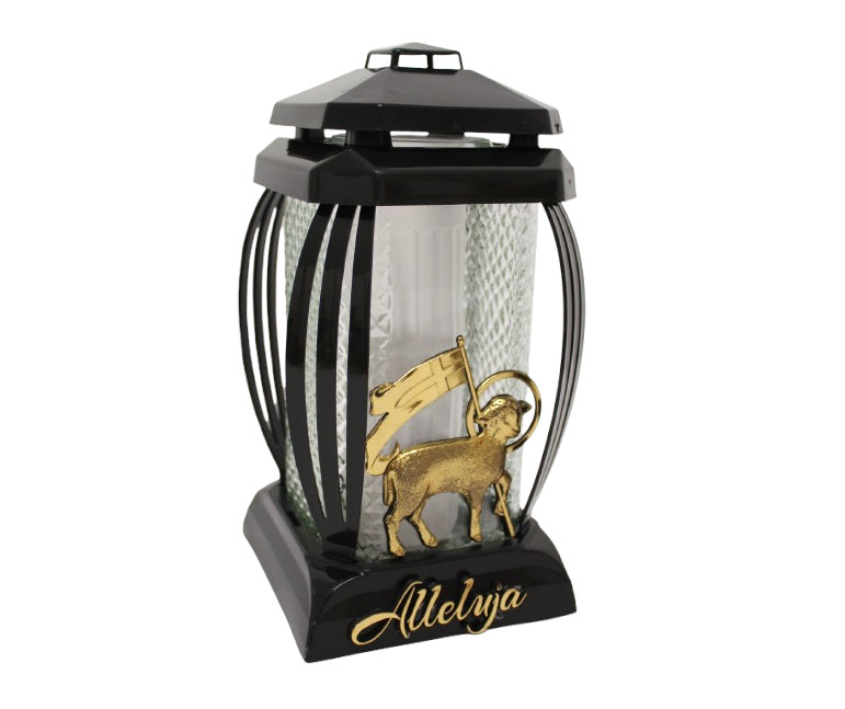 Znicz szklany PRIMA 1 Alleluja Baranek z chorągiewką CZARNO-ZŁOTY 24 cm - 1 szt