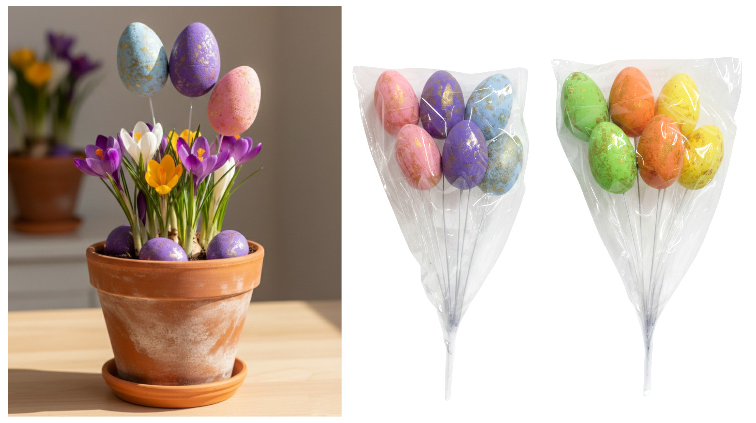 Jajka styropianowe na piku kolorowe pozłacane kpl 6 szt 24 cm mix