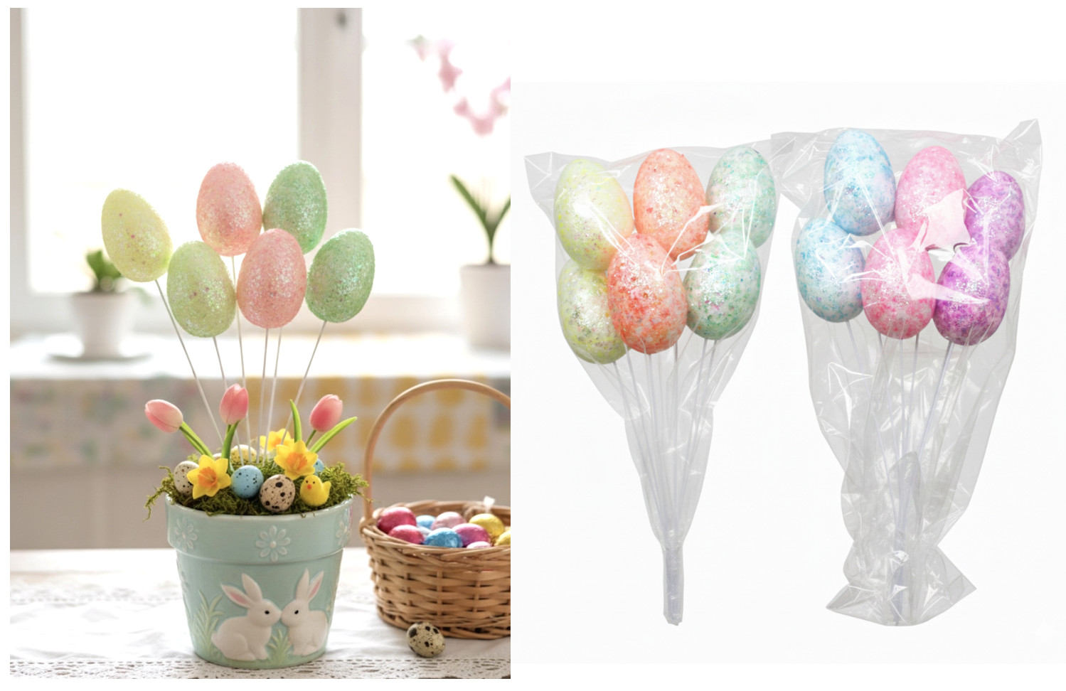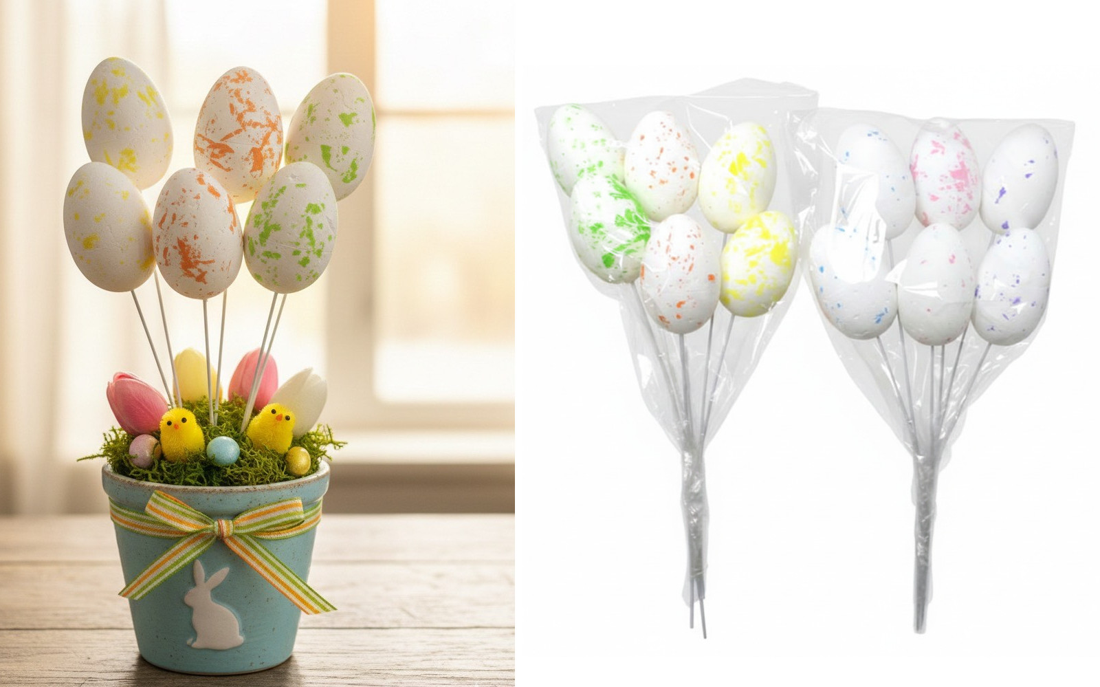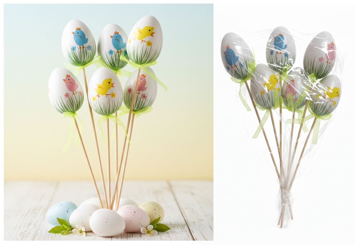 Jajka styropianowe na piku świecące mix kolor - kpl 6 szt