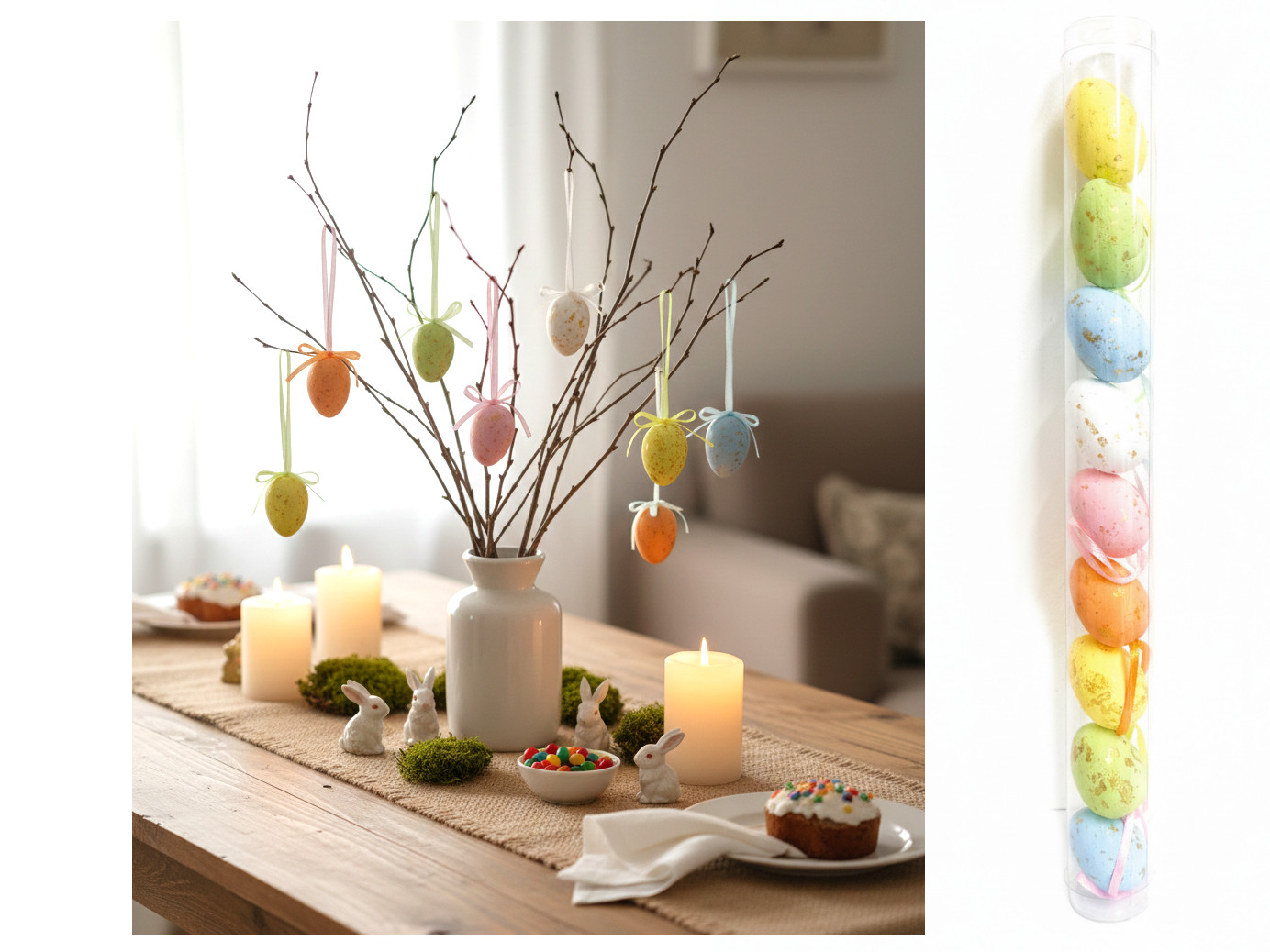Długość dekoracji 22 cm. Wymiar jajka 6x4 cm.