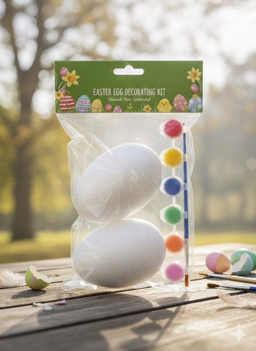 Jajka styropianowe z farbami 6 kolorów i pędzelkiem do malowania kpl 2 szt