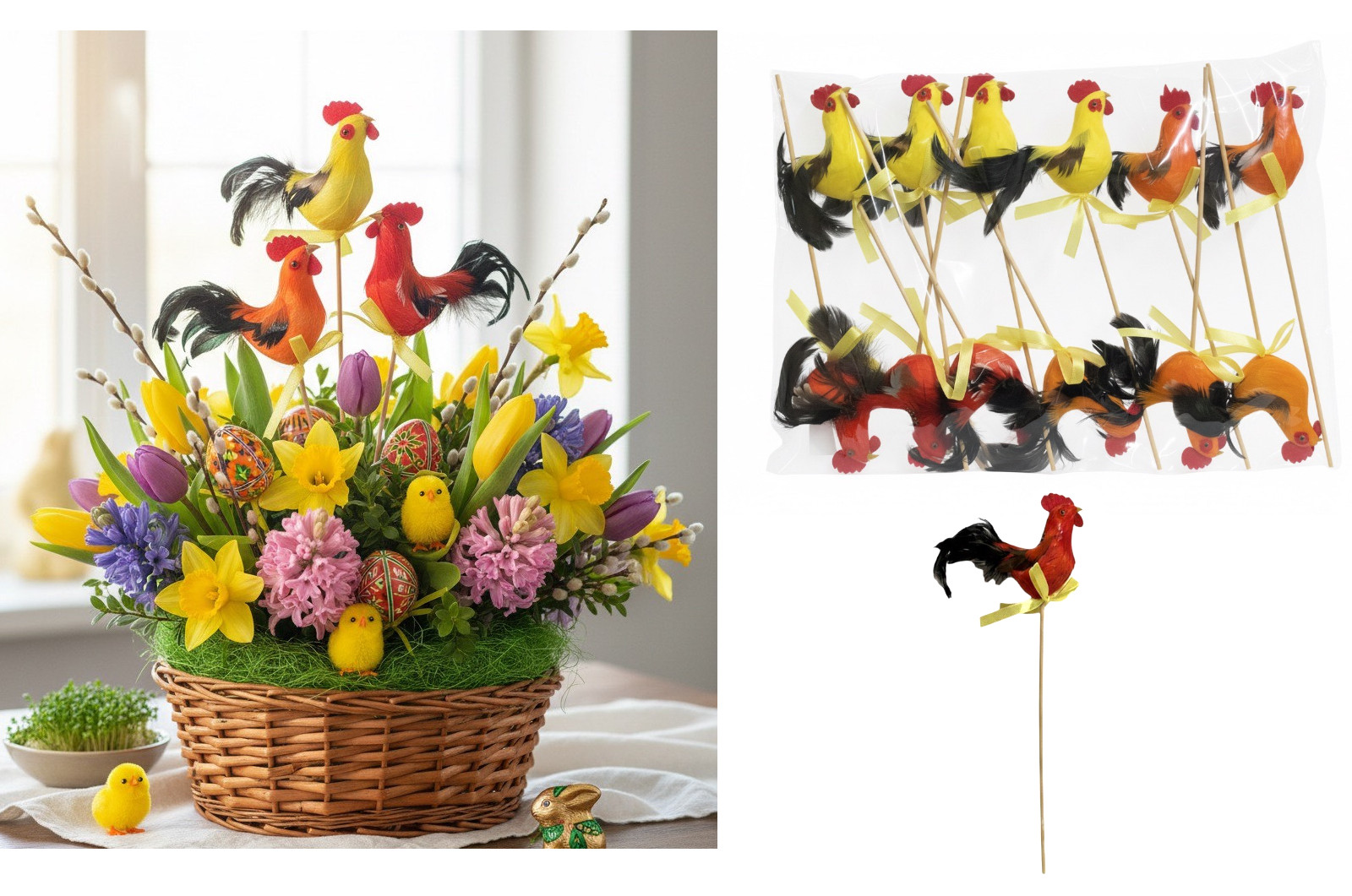 Długość dekoracji 21 cm. Rozmiar jajka 6x4 cm.