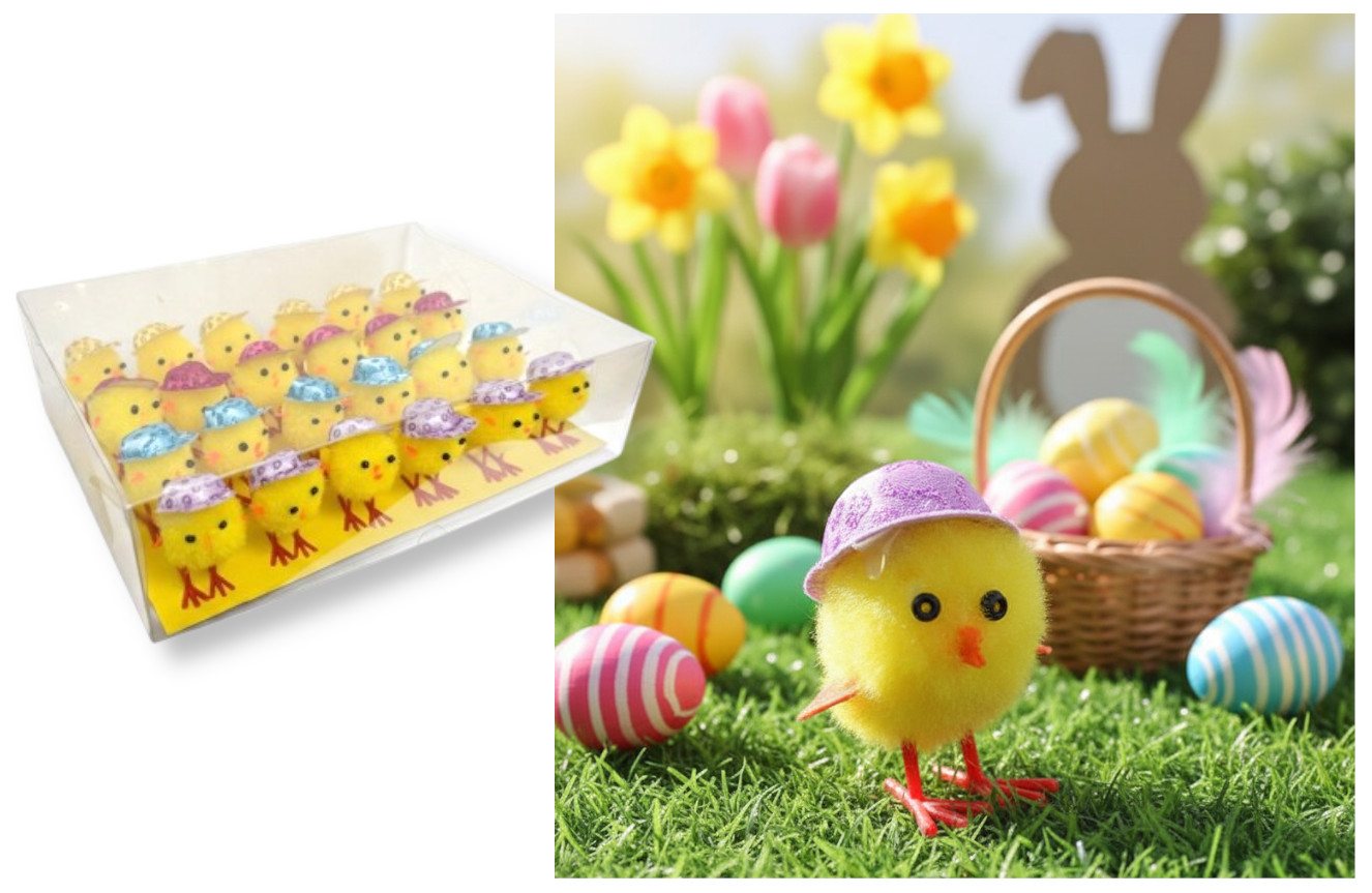 Kurczaczek w czapce z daszkiem dekoracja wielkanocna 5,5 cm - tw.sztuczne - 1 szt