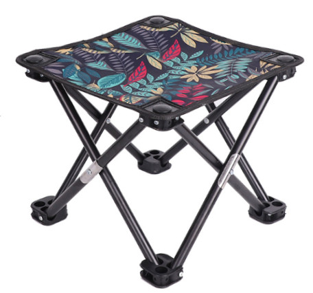 Taboret składany, wędkarski 28x28x23,5 cm  CZARNY z motywem liści