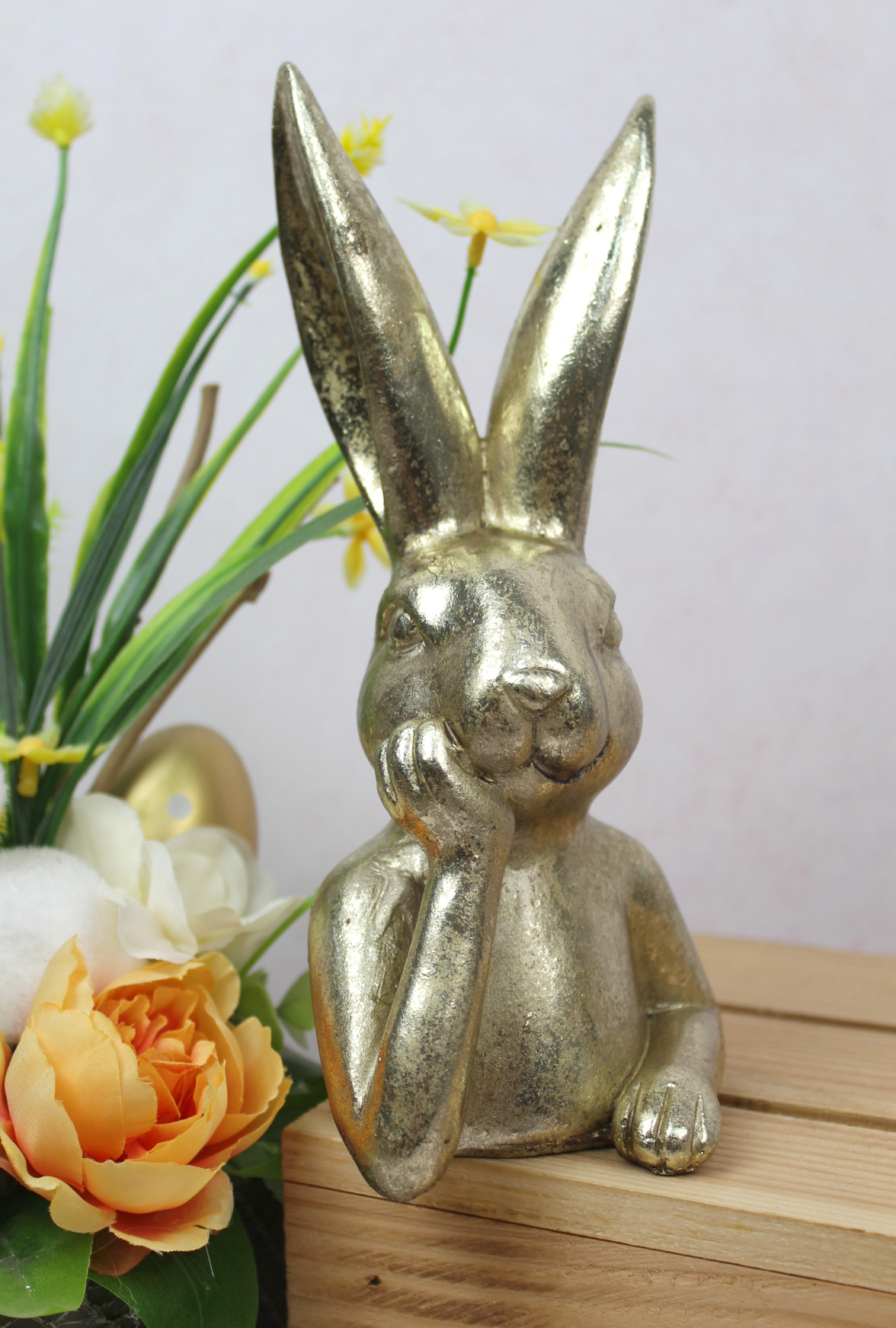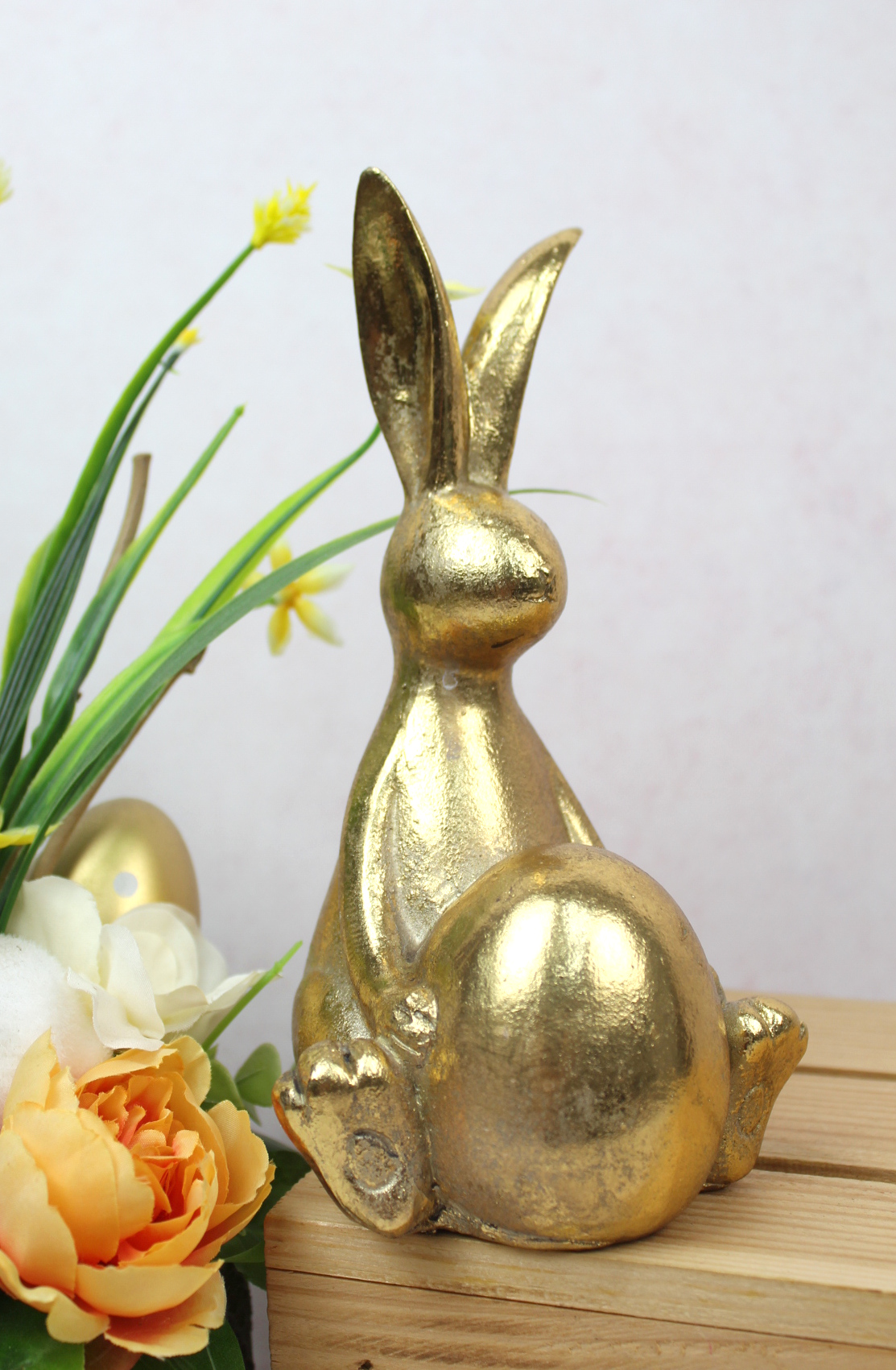 Figurka ceramiczna KRÓLIK Z PISANKĄ 18x10x10 cm ZŁOTY