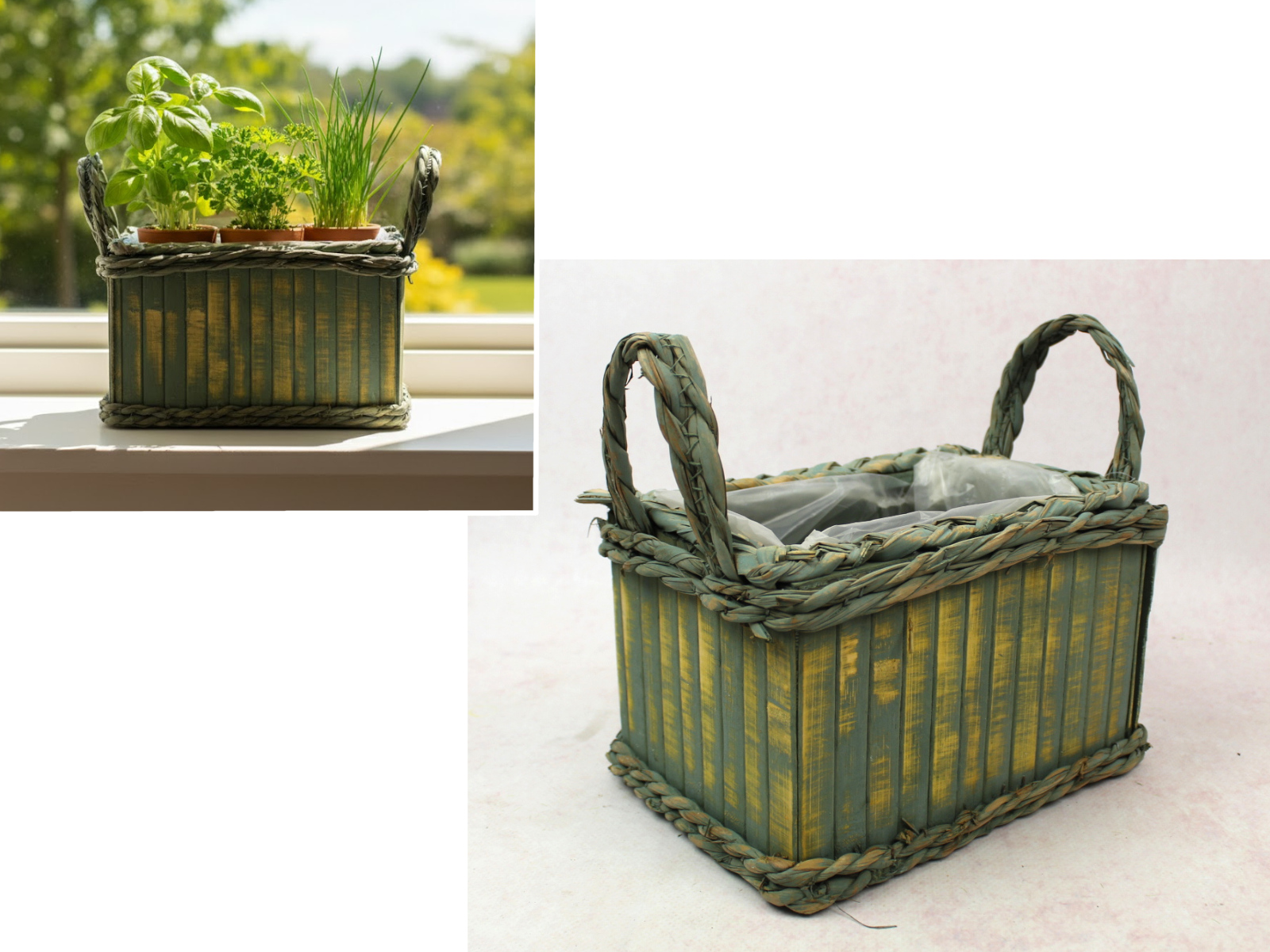 Osłonka drewniana zdobiona warkoczem 23x15x14 cm ZIELONA