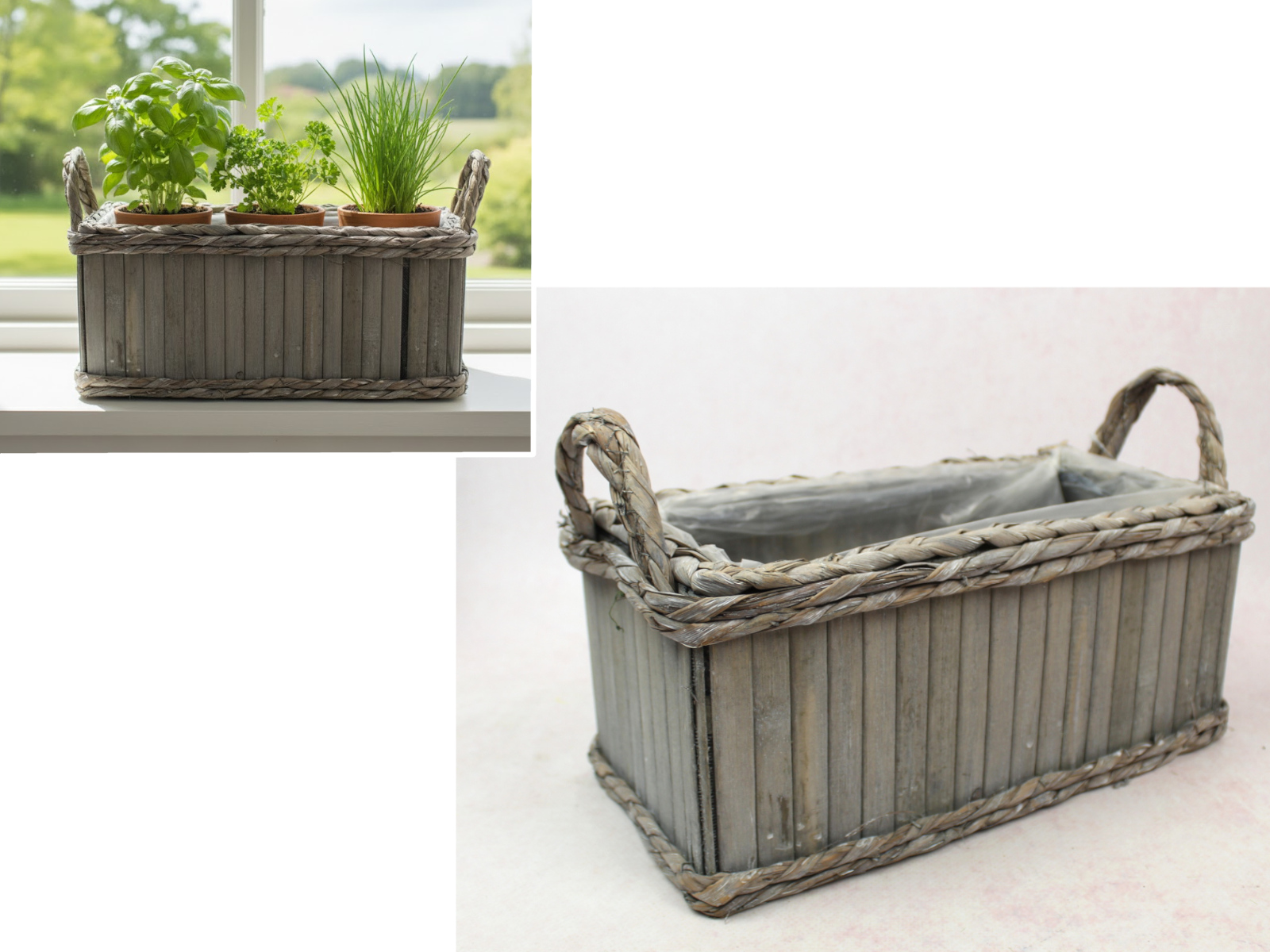Osłonka drewniana zdobiona warkoczem 32x16x14 cm SZARA