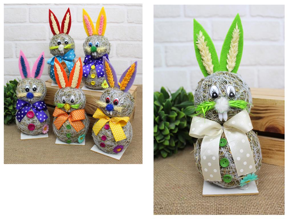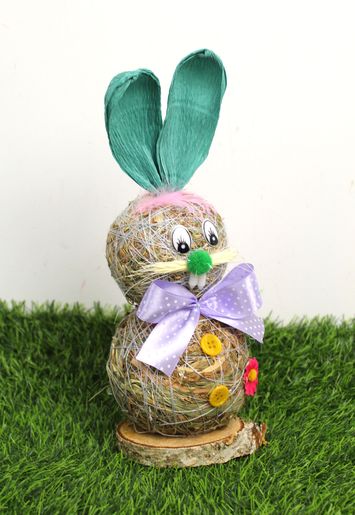 Zając z siana uszy z bibuły, kokarda w kropki 26 cm - MIX KOLOR