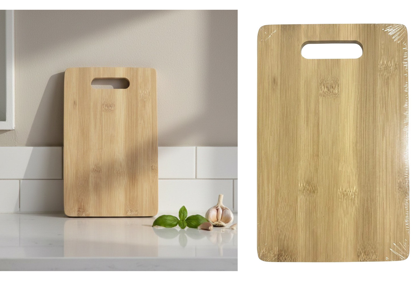 Deska kuchenna do krojenia BAMBUSOWA z plastikowym uchwytem 32x22x1,6 cm