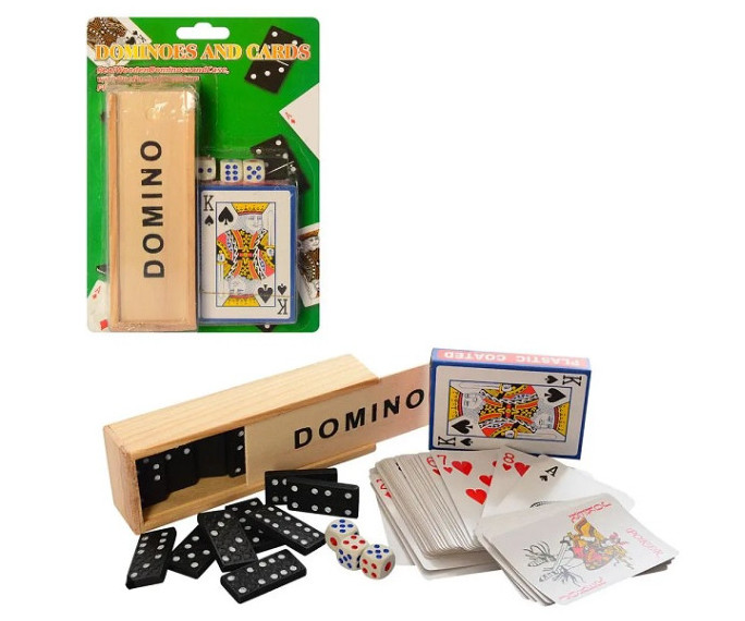 Gra domino + talia kart + 3 kostki do gry planszowej na blistrze 21x14 cm