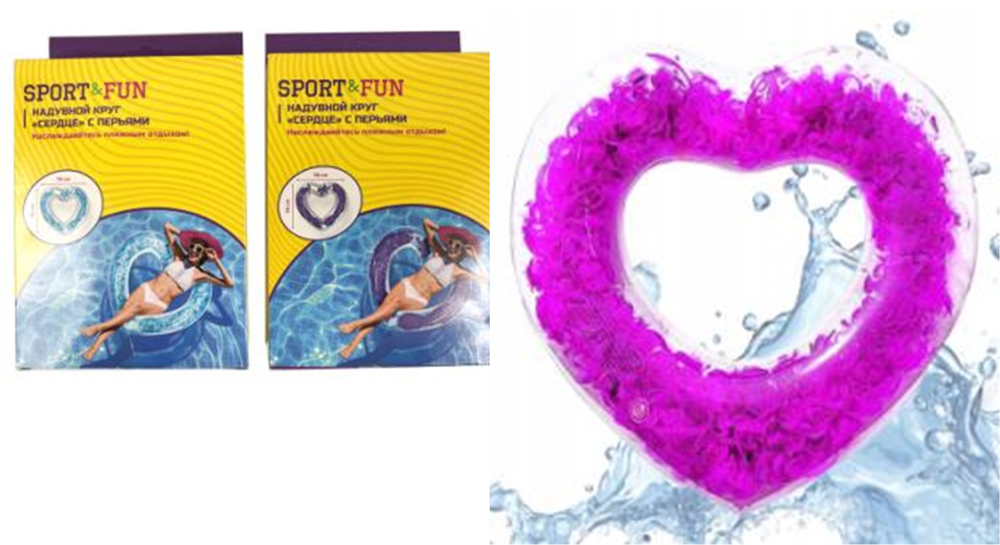 Koło dmuchane do pływania serce z piórami przezroczyste 78x75 cm MIX KOLOR