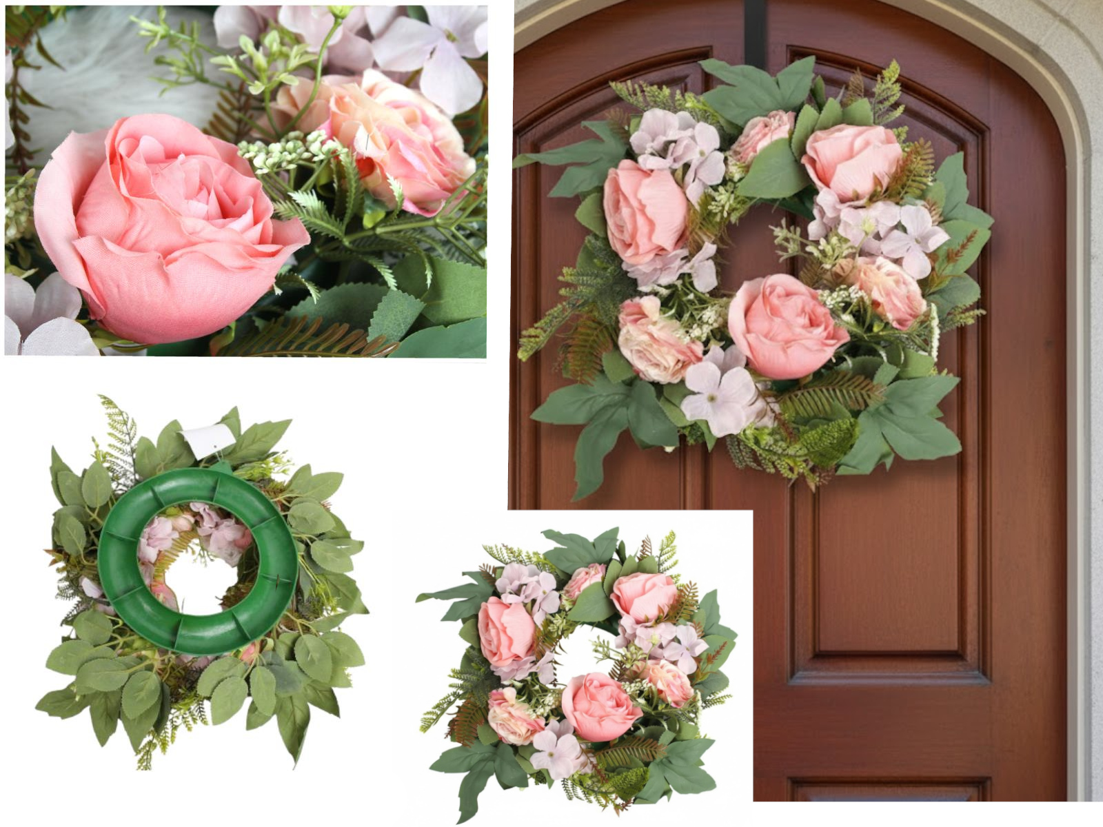 Wieniec, wianek mieszany z RÓŻĄ 43 cm, 9 kwiatów (róża 8x5 cm) RÓŻOWY