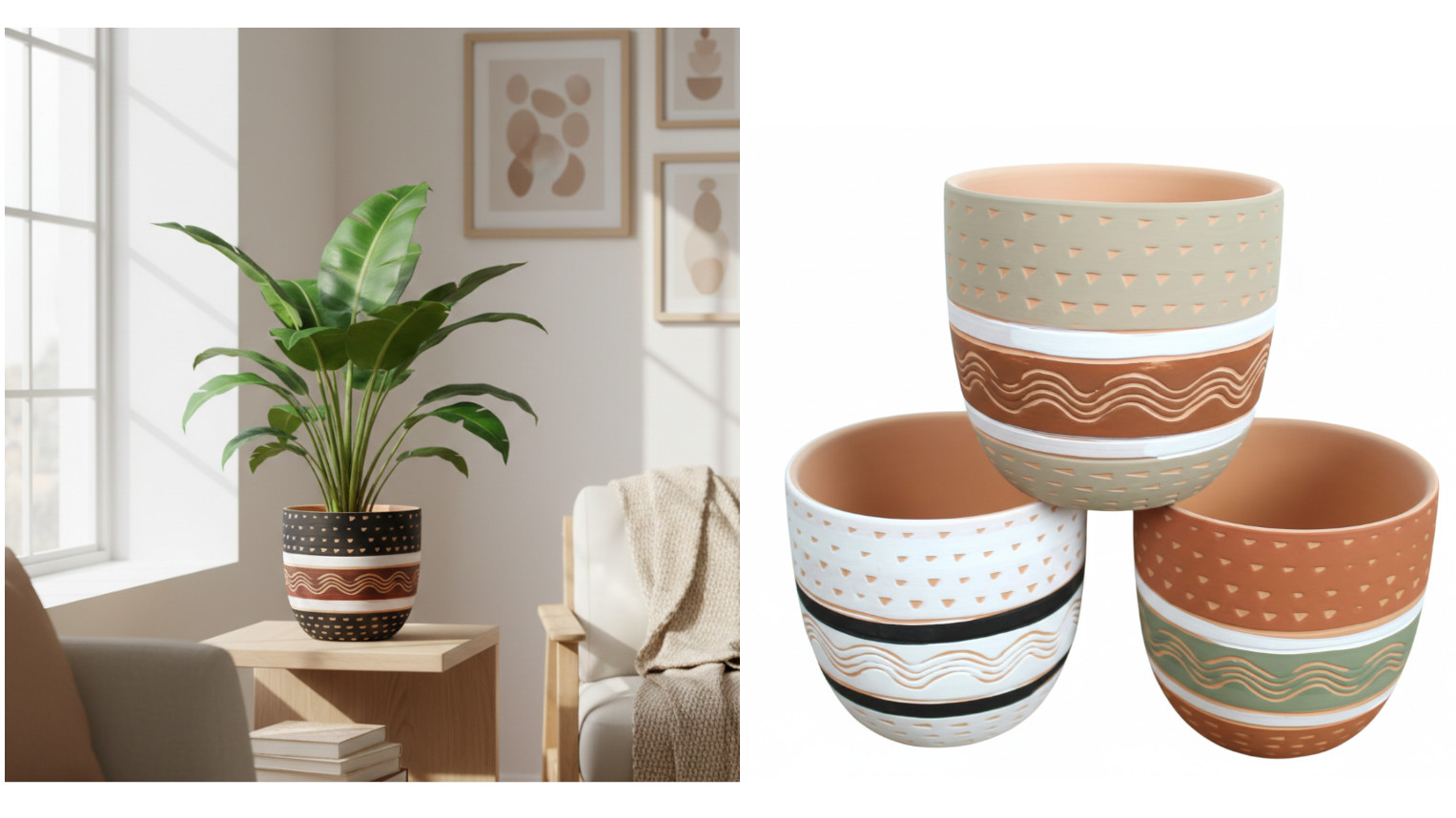 Doniczka, osłonka ceramiczna KAMIONKA 13,5x13 cm MIX WZORÓW