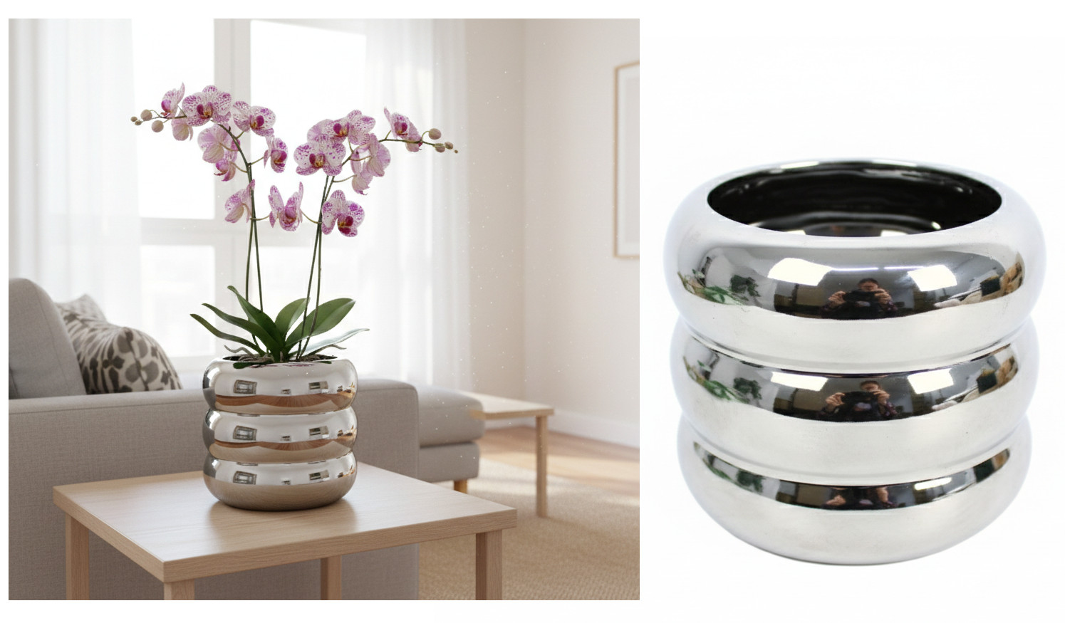 Doniczka, osłonka ceramiczna 11x10 cm SREBRNA