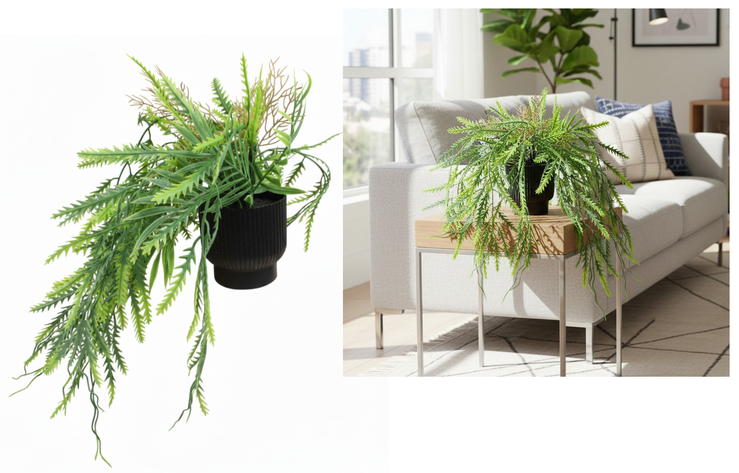 Kwiat ala PAPROĆ, zwis w czarnej doniczce wys. 40 cm