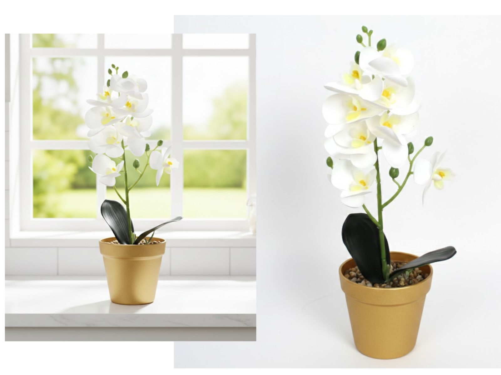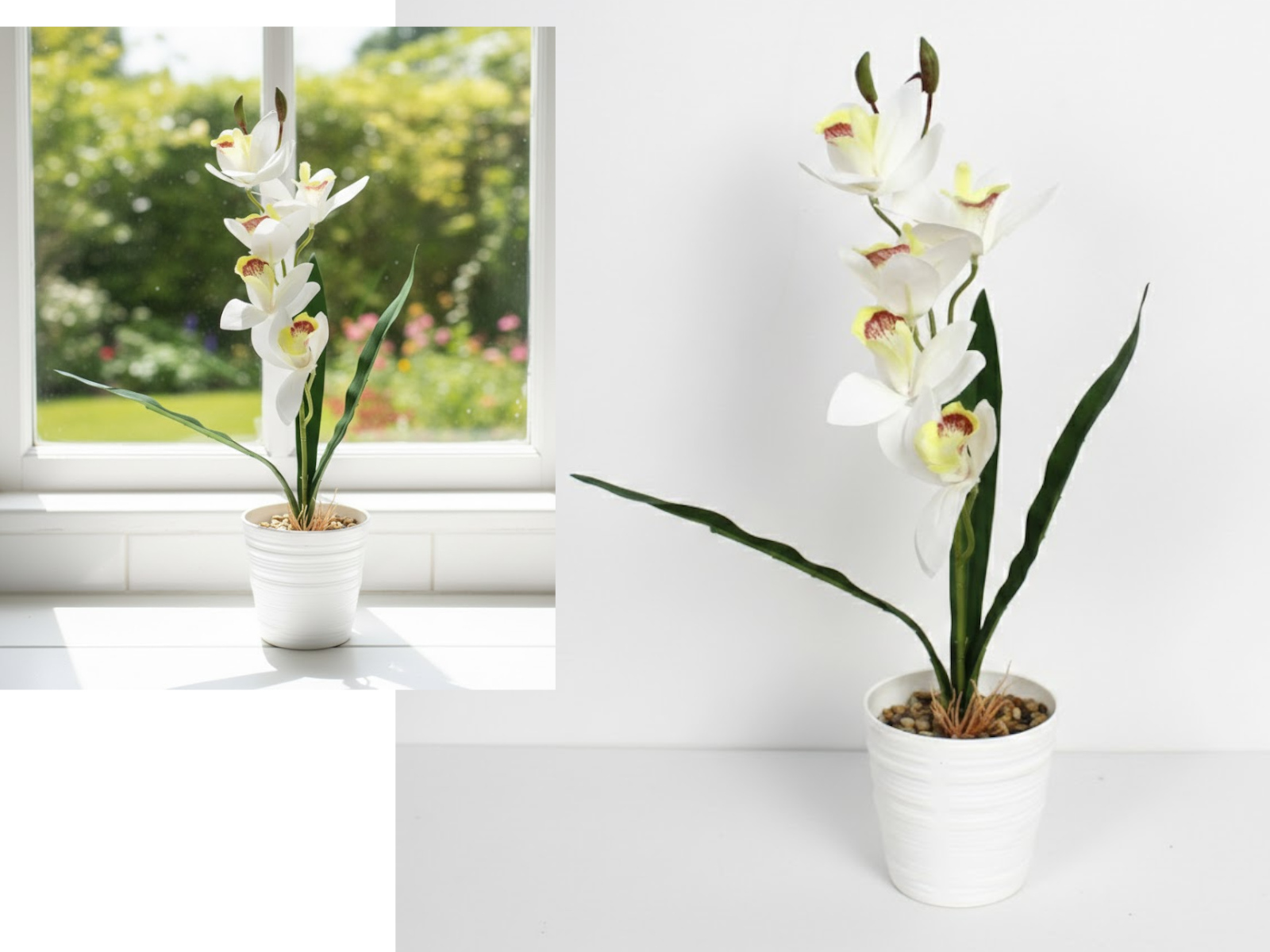 Kwiat STORCZYK silikonowy w plastikowej doniczce wys. 40 cm, 5 łodyg (20 kwiatów 8-6 cm) BIAŁY