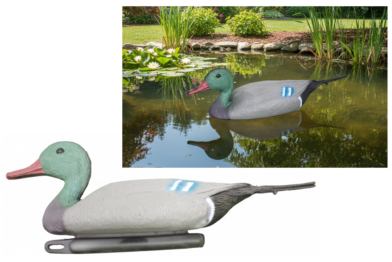 Ptak sztuczny-plastik KACZKA 48x15x14 cm SZARO-ZIELONA