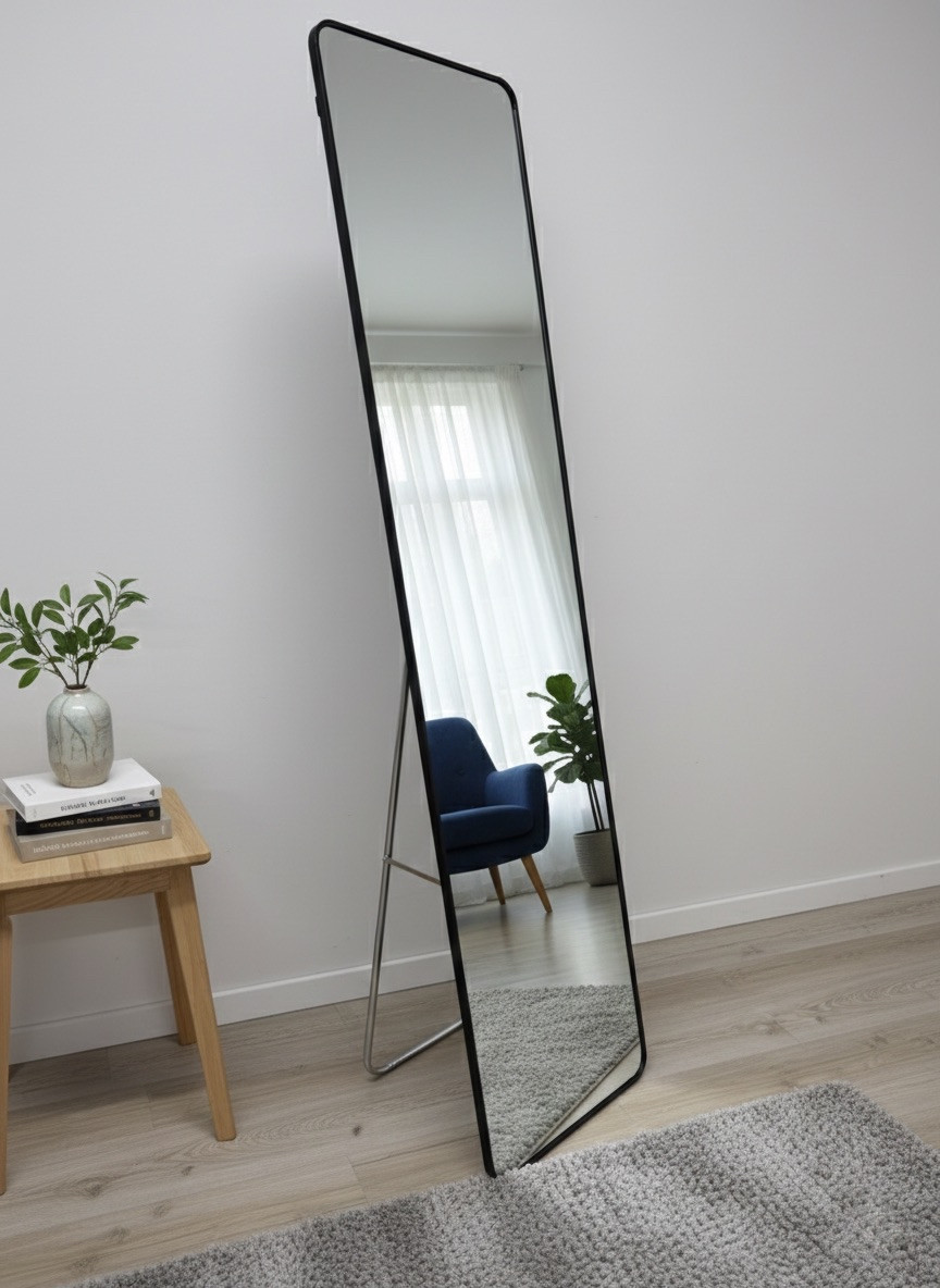 Lustro stojące, ścienne PROSTOKĄTNE ZAOKRĄGLONE 146x36 cm aluminiowa rama CZARNE