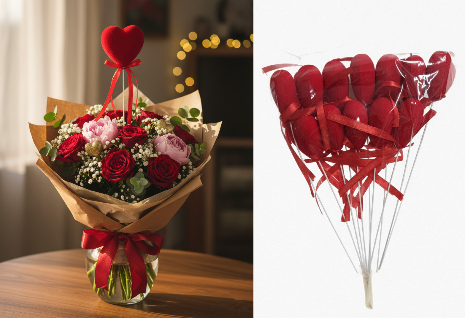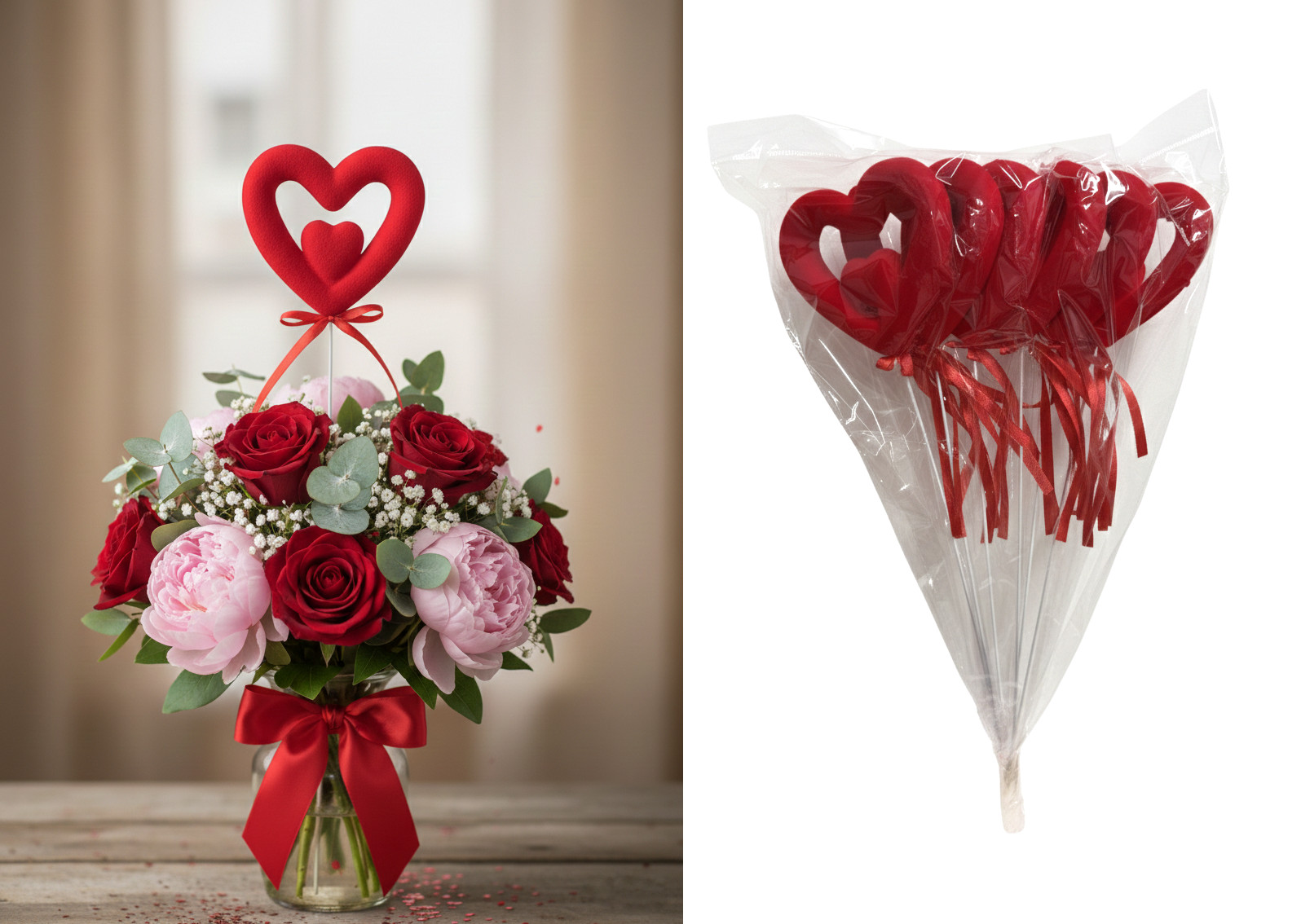 Serce na piku styropianowe flokowane 35x10 cm kpl 6 szt CZERWONE