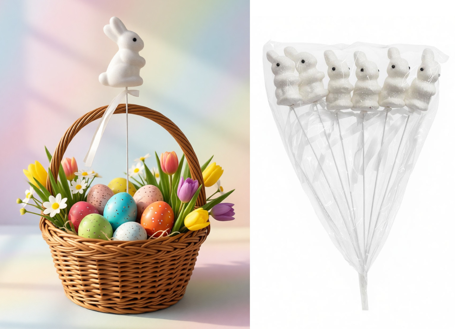 Zając na piku styropianowy brokat 30x7 cm kpl 6 szt