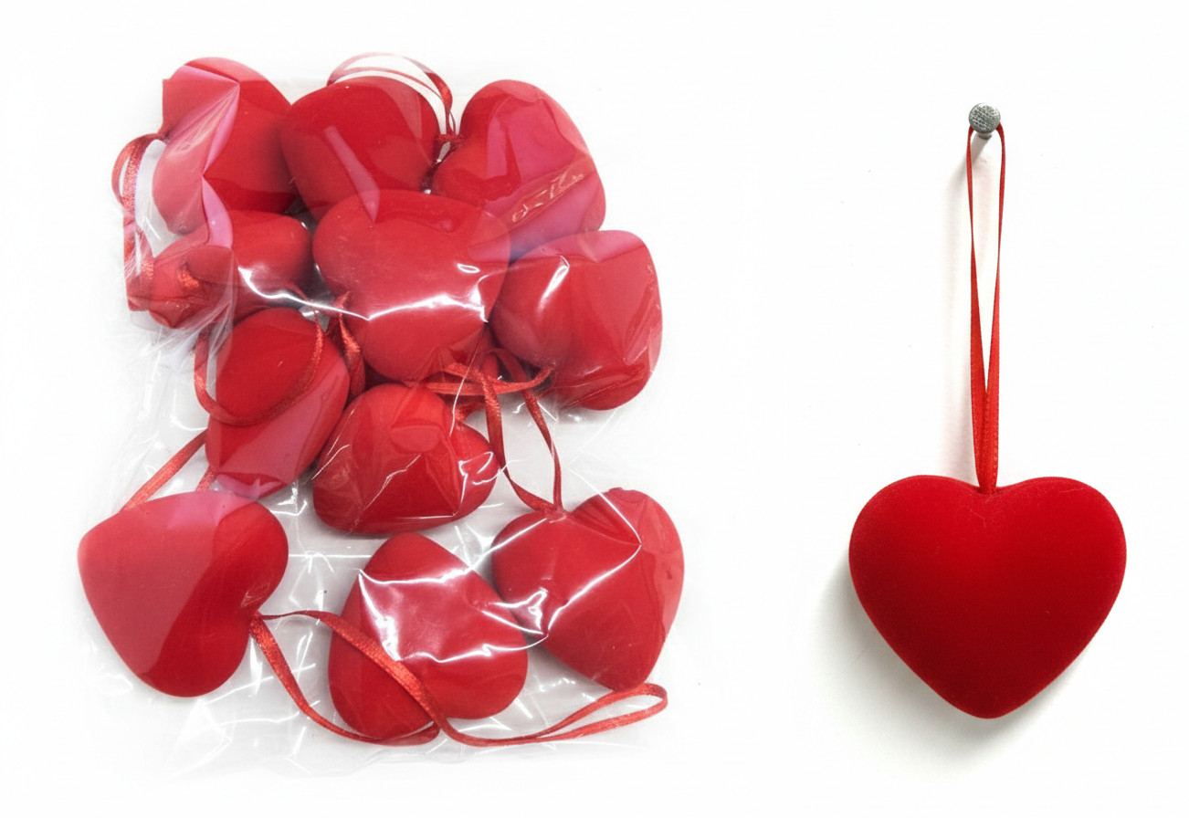 Zawieszka, ozdoba serce styropianowe flokowane 6,5 cm kpl 12 szt CZERWONE