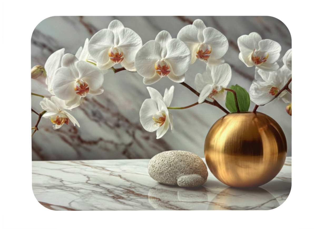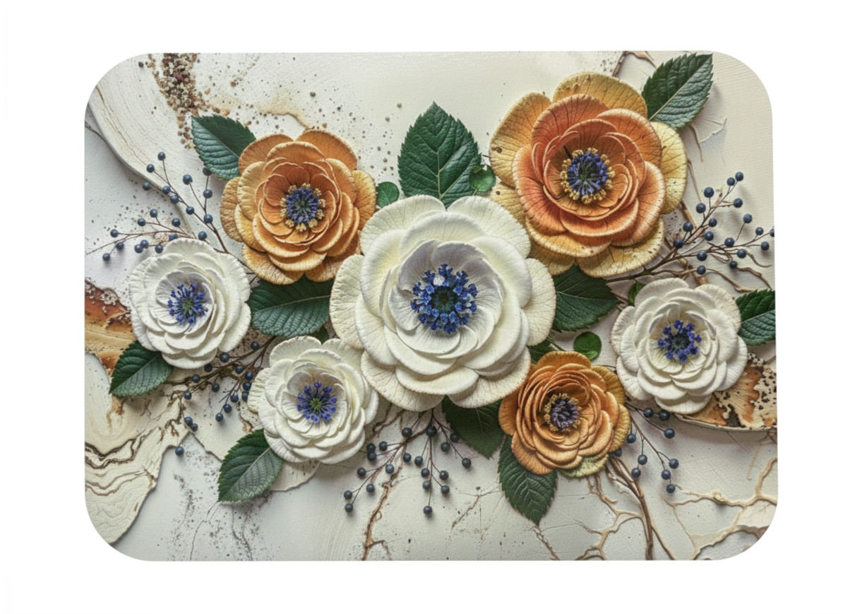 Mata stołowa 40x30 cm ANEMONY BIAŁE, ZŁOTE NA MARMUROWYM TLE GLAMOUR