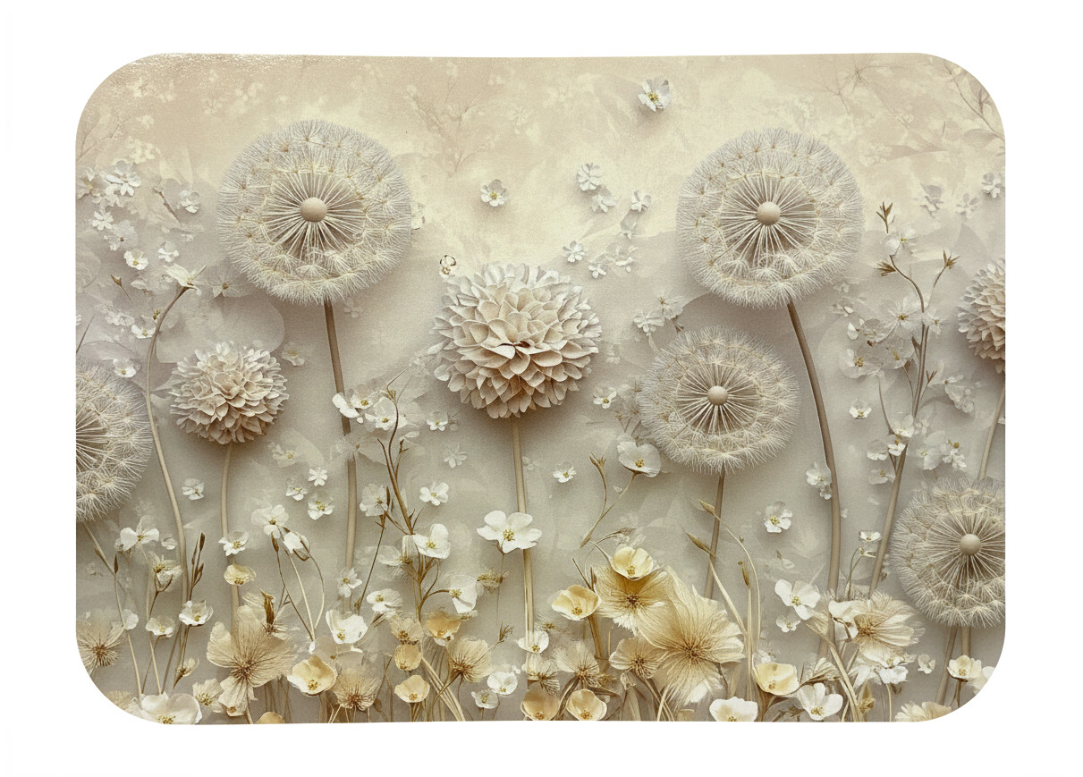 Mata stołowa 40x30 cm DMUCHAWCE NA BEŻOWYM TLE Z DODATKAMI