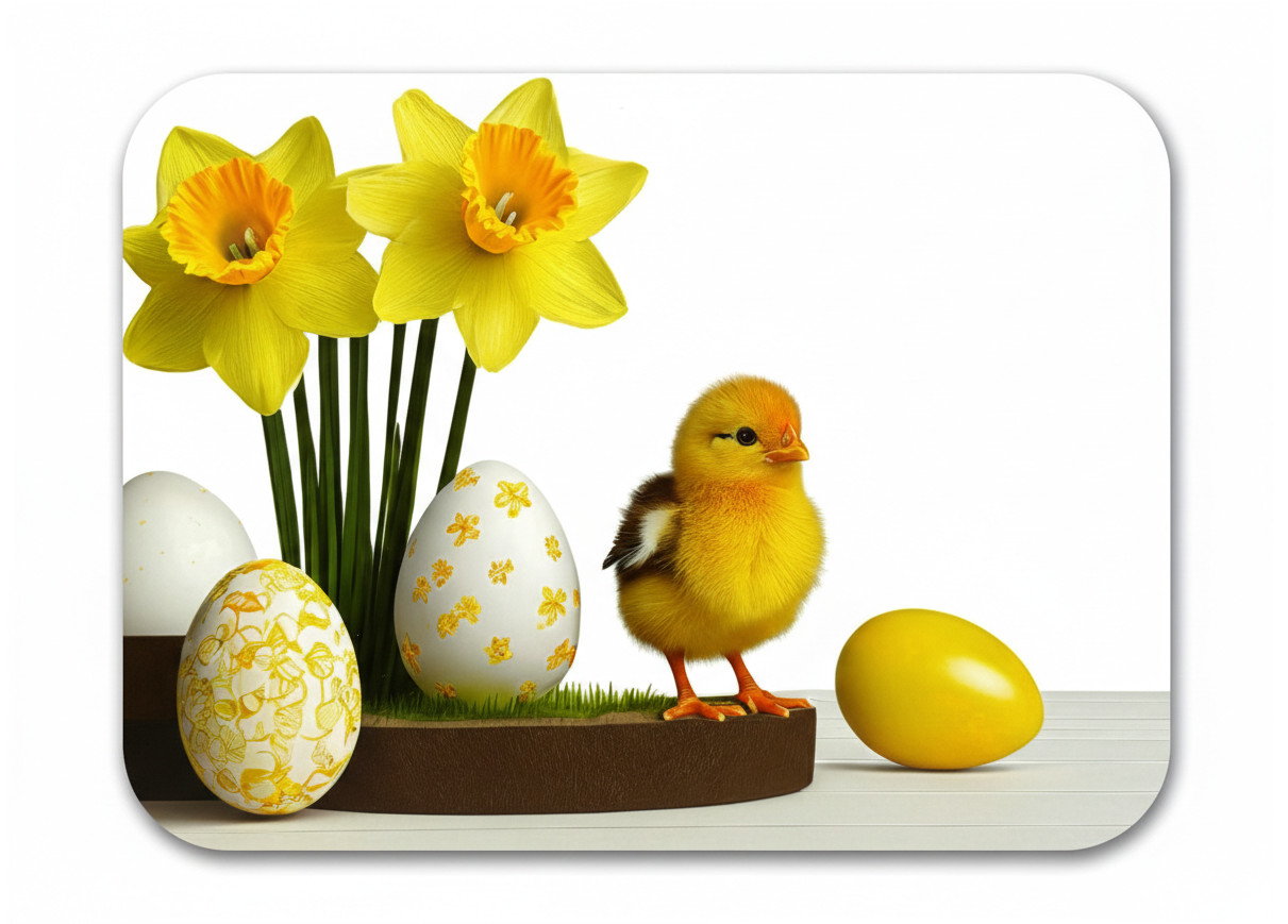 Mata stołowa 40x30 cm KURCZACZEK, ŻONKILE, PISANKI NA BIAŁYM TLE