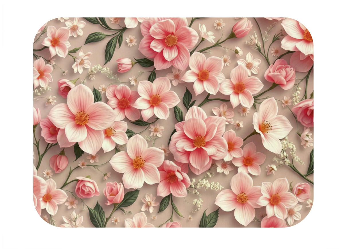 Mata stołowa 40x30 cm MAGNOLIE JASNO RÓŻOWE, LISTKI, BEŻOWE TŁO