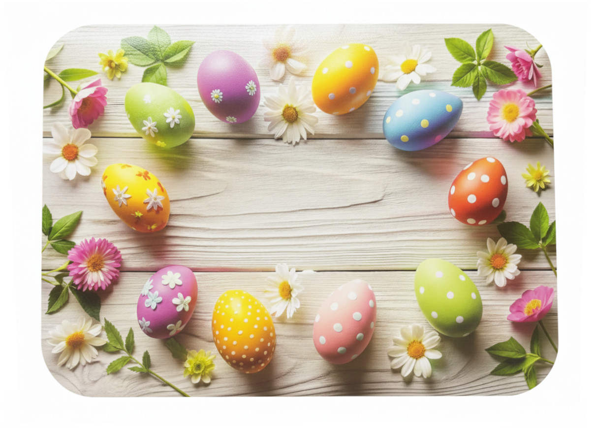 Mata stołowa 40x30 cm PISANKI KOLOROWE NA DREWNIANYM TLE